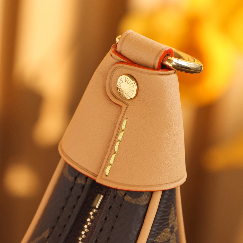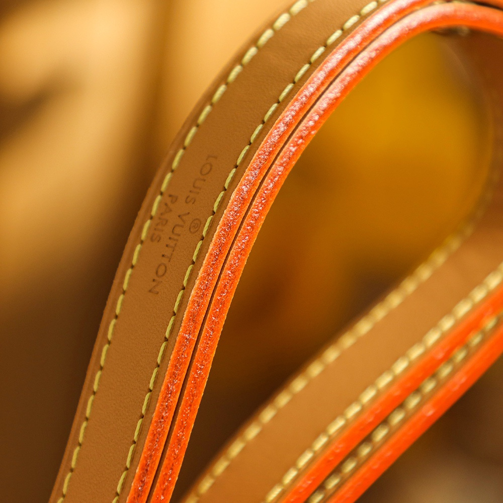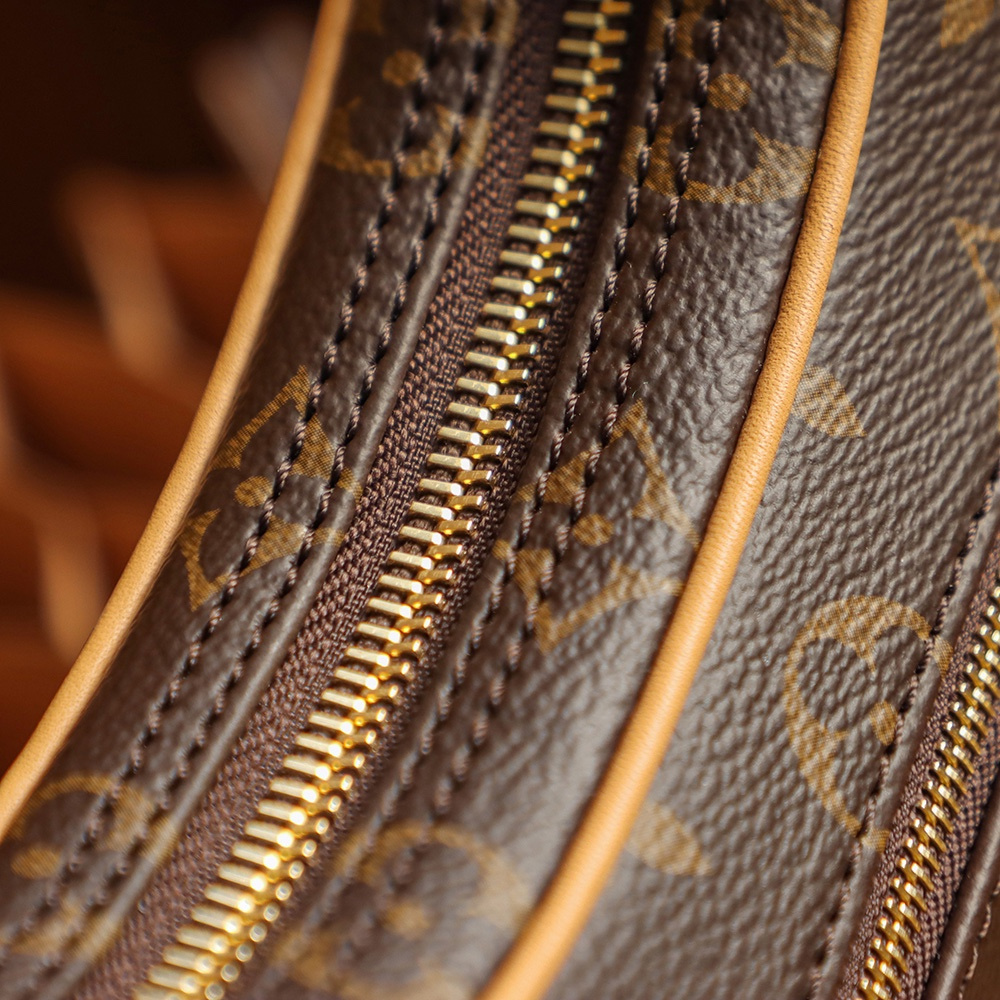作為腋下包.還原貼合身形的版本.帆布的縫合基準上不漏邊.針對某個LOGO字面相對應把控位置.而邊緣部分使用真皮革封邊設計.杜絕使用人造皮革.不禁長久使用且容易出現掉皮缺陷.高仿LV腋下包正面部分配備拉鏈式開合夾層.採用莎菲線縫合.外縫線設計線路明顯突出.針孔不齊的原因是做到了與原版一致純手工製作.