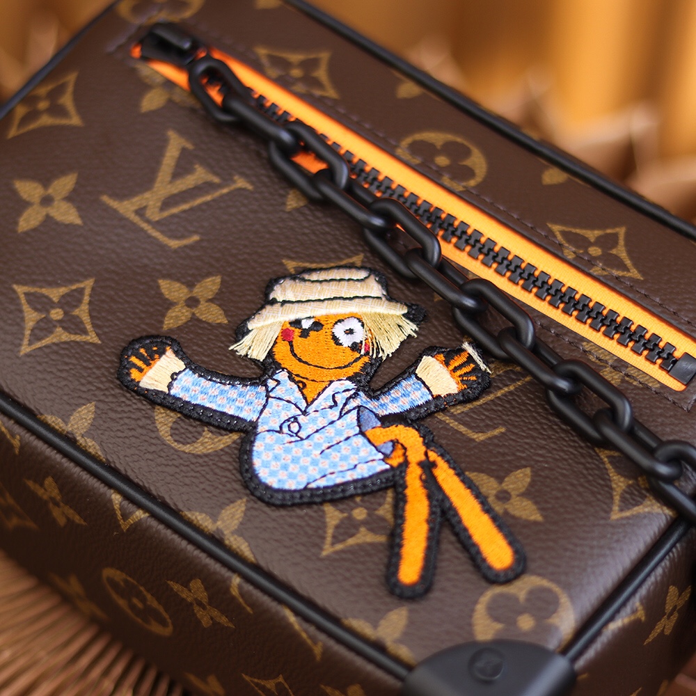 以Trunk系列作為改款的盒子包.在原有的帆布老花上增加了卡通設計.不僅如此在2021年此款包包已經是熱門爆款.搭配的卡通元素增加了盒子包顏值附有視覺衝擊感.與眾不同的包體原單LV盒子包繼承了原裝正品採用純手工縫製而成.並非工業品使用劣質低端機車縫線.