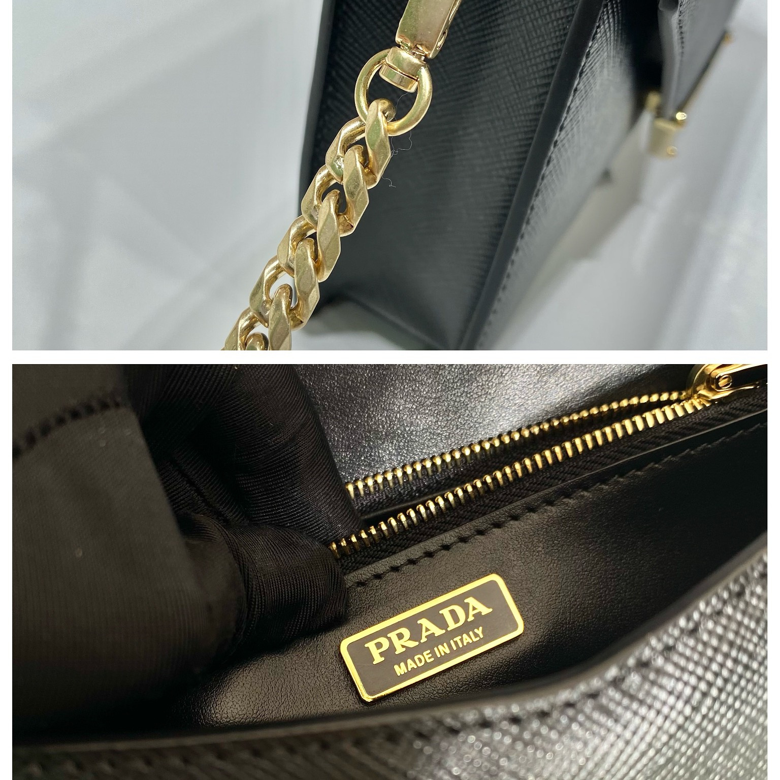 高仿Prada鏈條單肩包1BD318黑色免檢版
