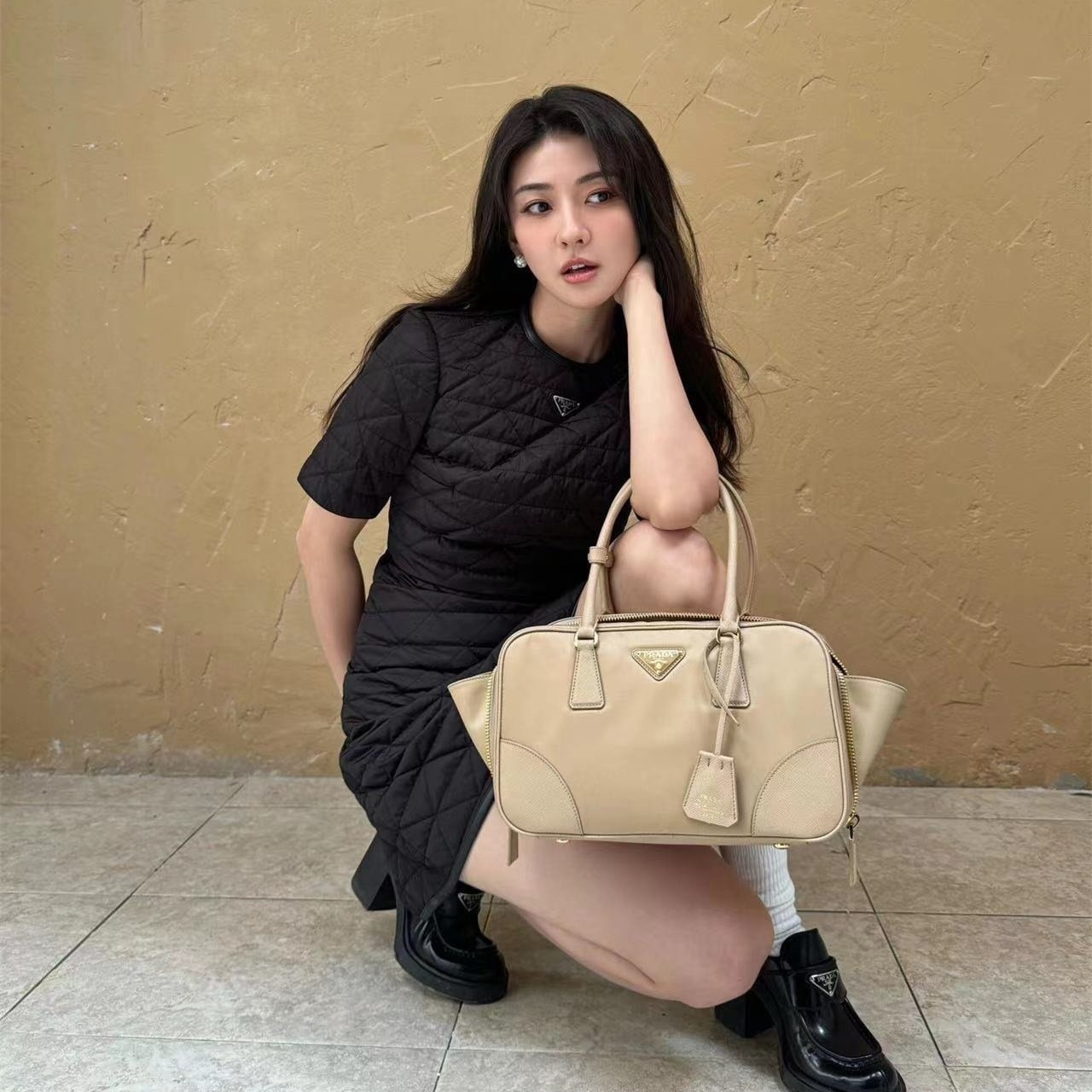 高仿Prada*ReEdition系列手提袋1BB115大號卡其免檢版