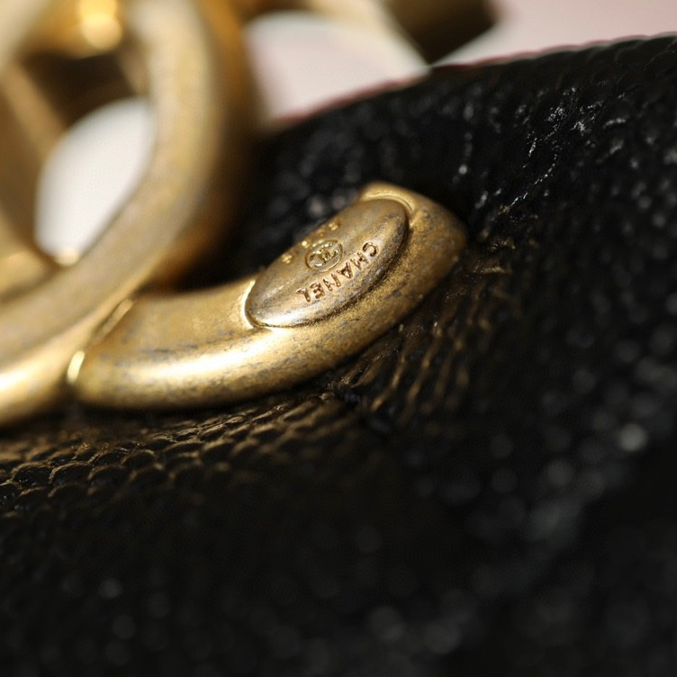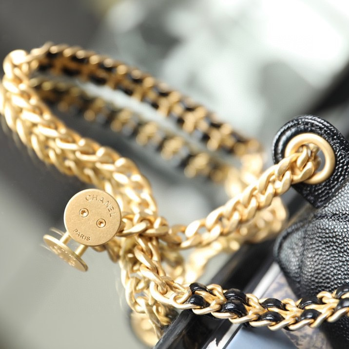 正面的雙C開合扣具字樣是這款包的亮點.高仿Chanel女包采用24K厚鍍金屬技術.完美還原了原版的色澤和細節.字母的弧度和嵌入的精確度都經過細致的工藝處理.保證了與原版無異.皮革鏈條也是純手工製作.展現了匠心獨運.高仿Chanel香港專屬定製的高仿包.堅持使用高級原材料.為消費者帶來近乎完美的復刻體驗.
