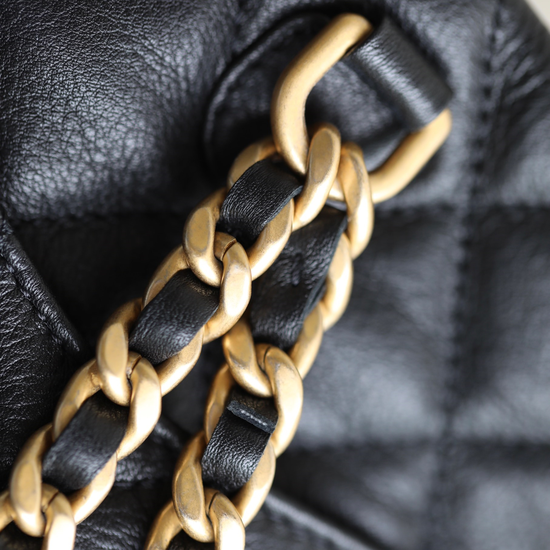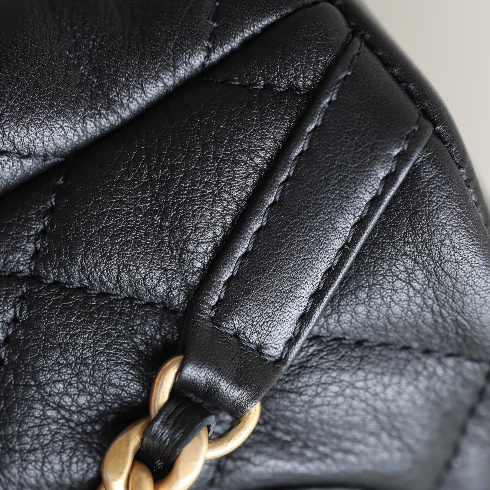 此次原單Chanel雙肩包是沿用到正品獨家渠道購入摔紋小牛皮材質.肉眼可見的手掌紋.紋路錯亂感十足.而且牛皮質的質地手感經過工藝處理後.光澤度呈現啞光.與原版一致完全無誤差.菱格衍縫線的處理標準.每一處菱格小香包包高仿都是通過3D打印還原.