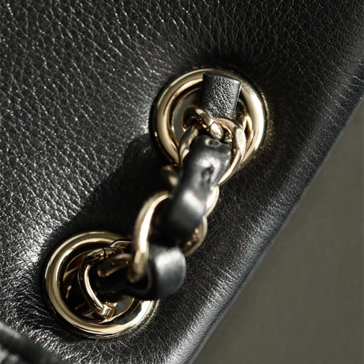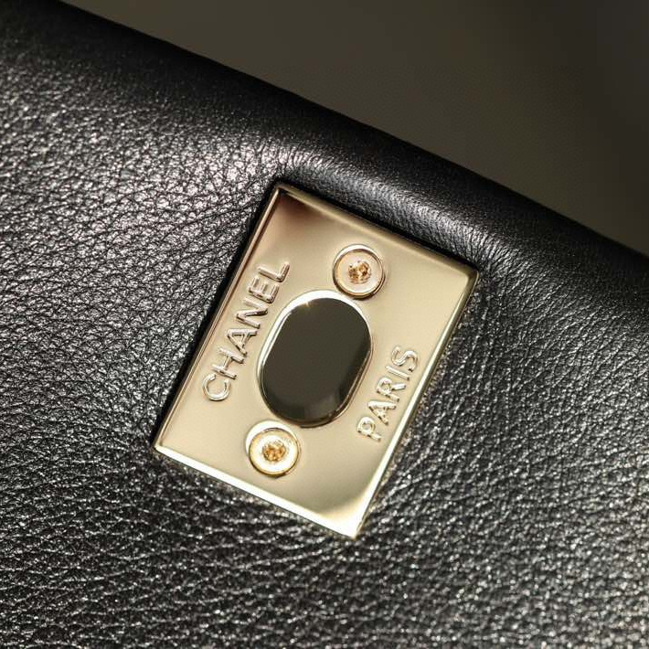 包包正面的口蓋式設計.搭配標誌性的雙C金屬扣具.增強了整體的辨識度.皮穿鏈條和金屬扣具經過最新的復刻厚鍍工藝處理.14K淡金色澤經過精細打磨.呈現出細膩的高端感.每一款高仿Chanel包包都是在香港Mirorbags官網直營店純手工製作而成.保證了每一件作品的獨特性和精致度.