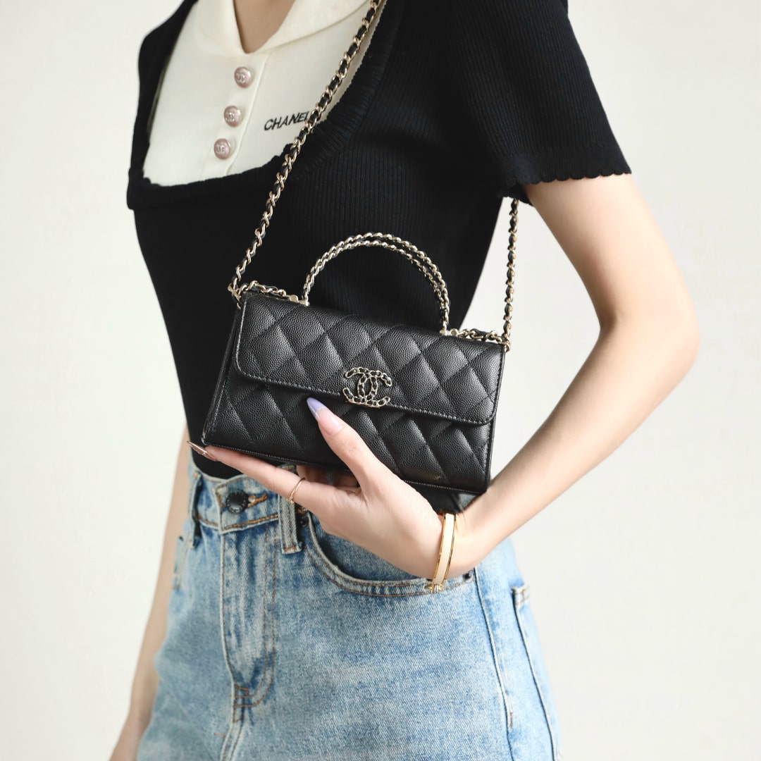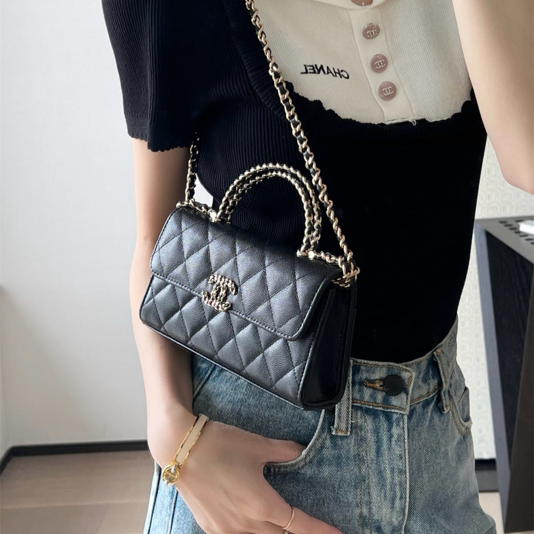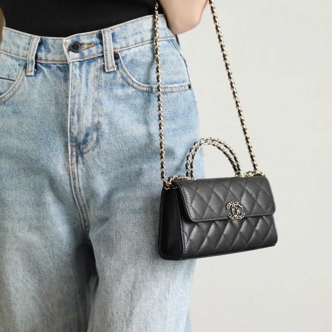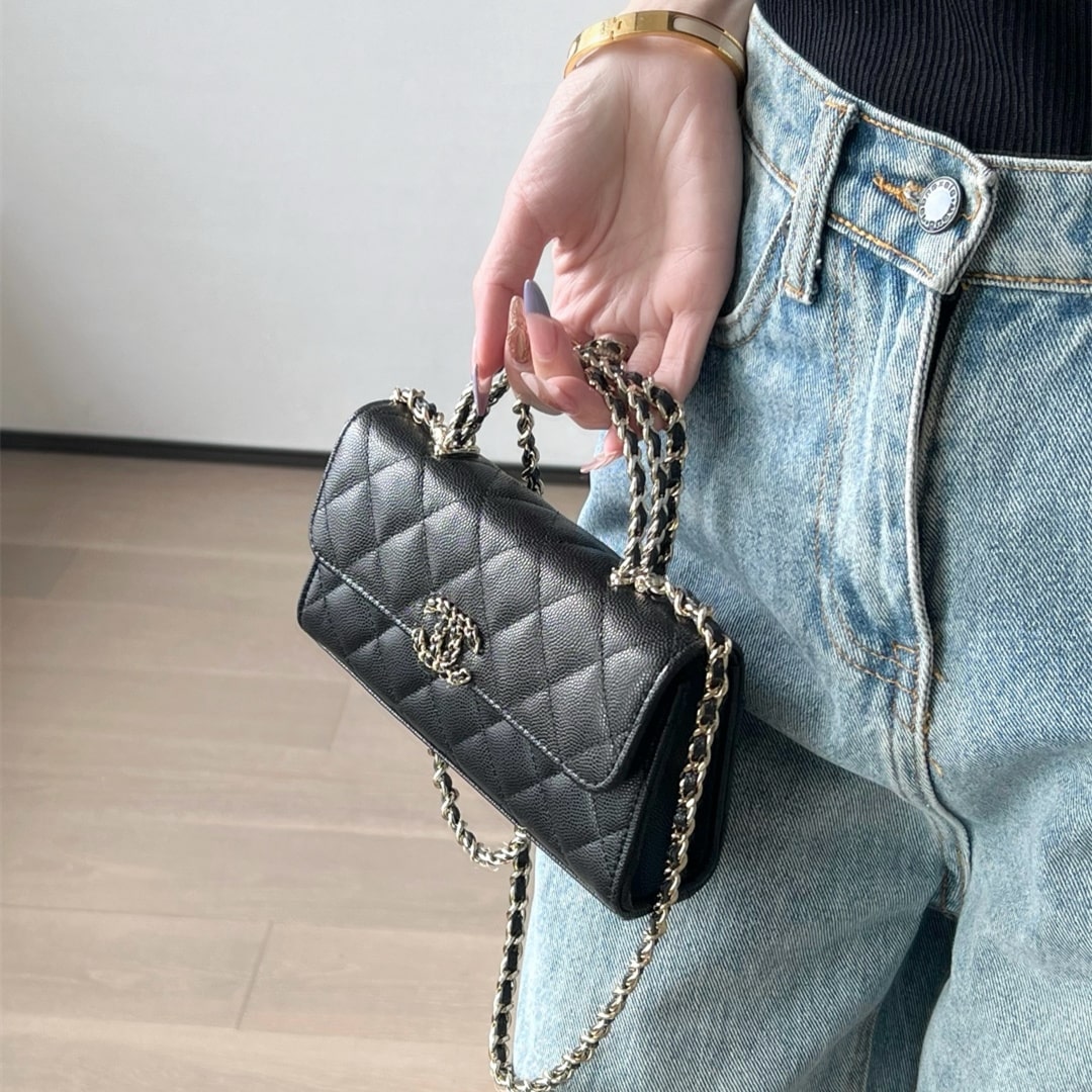 全新發售高仿Chanel*23P系列交叉手柄𝖬𝗂𝗇𝗂𝖪𝖾𝗅𝗅𝗒黑色手袋.爆款輪回全新版本迷你𝗄𝖾𝗅𝗅𝗒橫款.當𝖢𝗁𝖺𝗇𝖾𝗅傳奇美學與精致工藝碰撞.這款交叉鏈手柄𝖬𝗂𝗇𝗂𝖪𝖾𝗅𝗅𝗒應運而生設計獨具巧思.有優雅的手提韻味.又能隨性斜挎.解鎖多樣時尚造型!