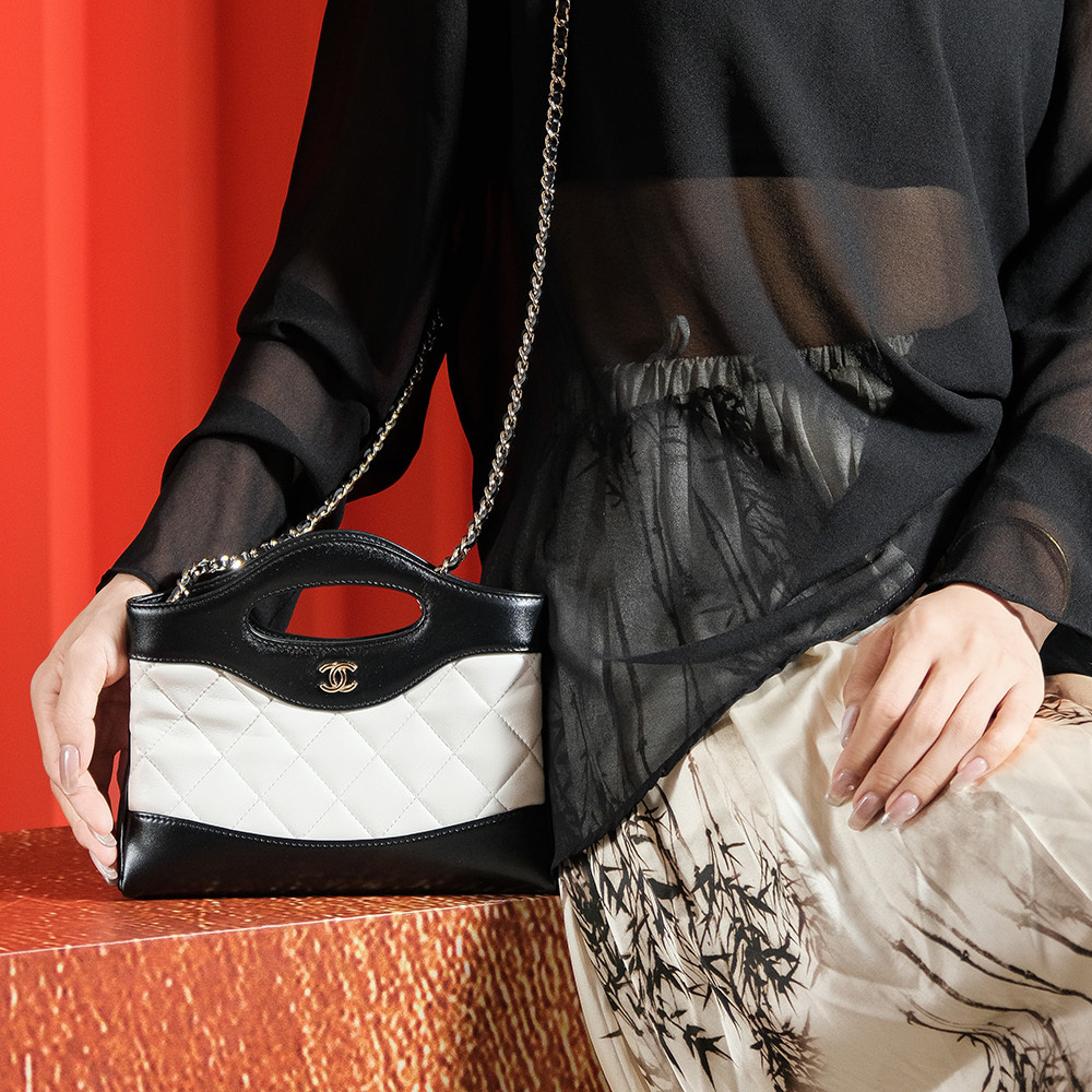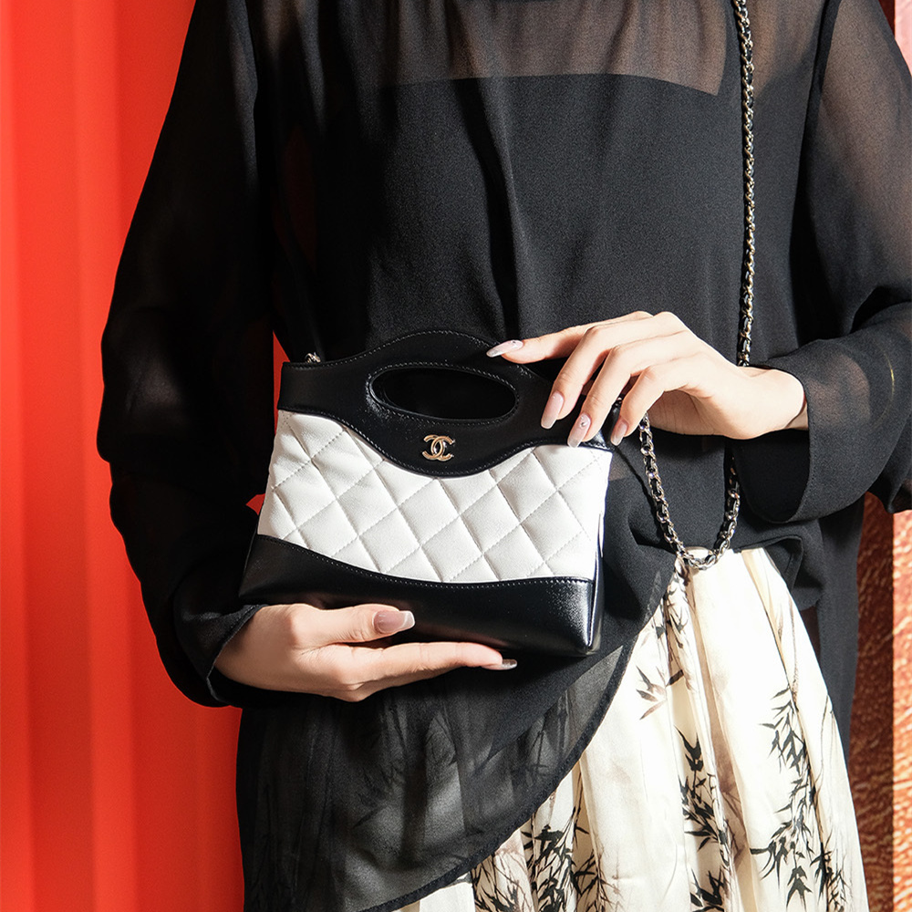 • 高仿Chanel*24B系列AS3656黑白拼色小羊皮斜挎包免檢版