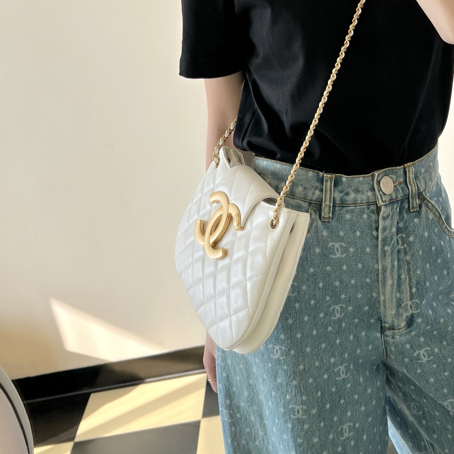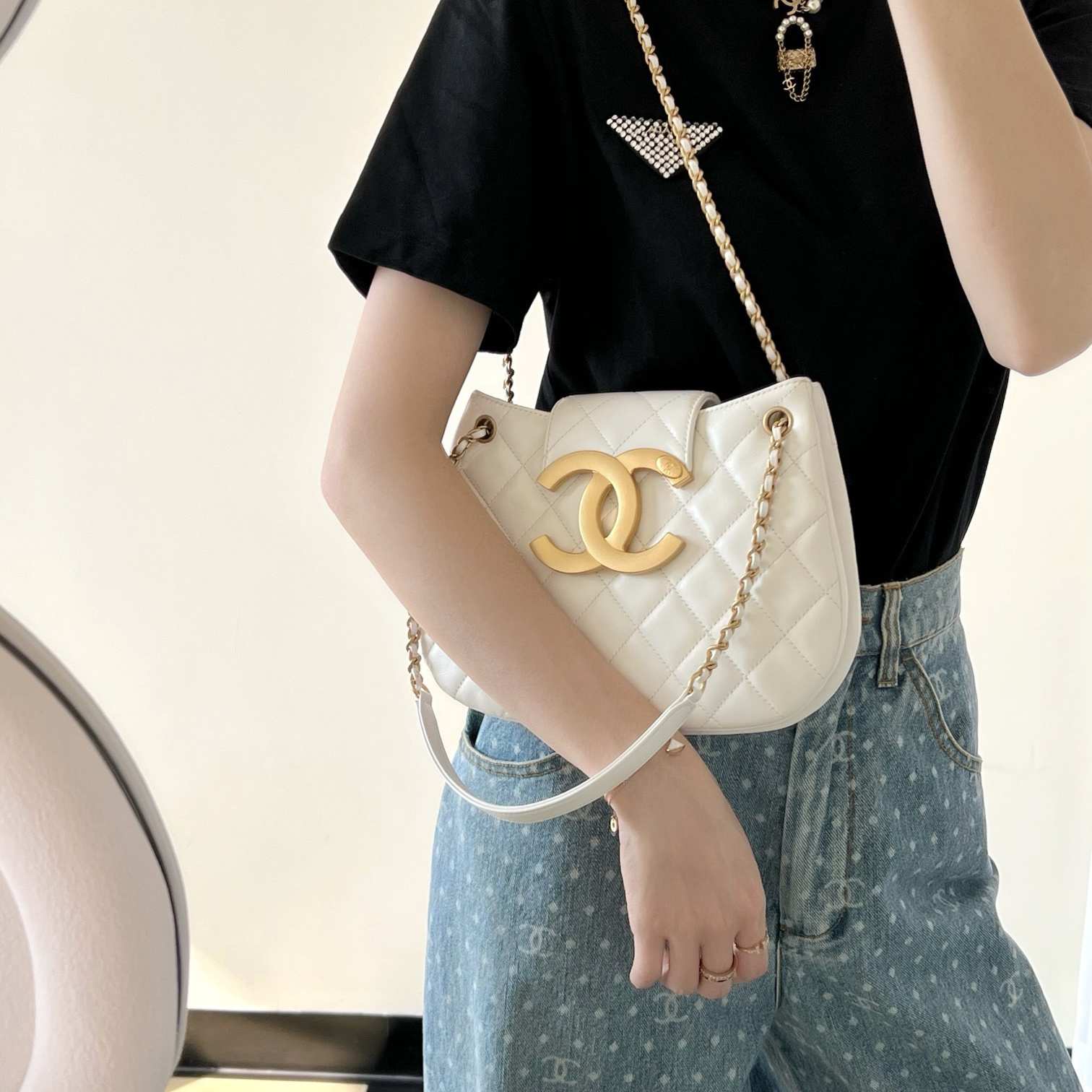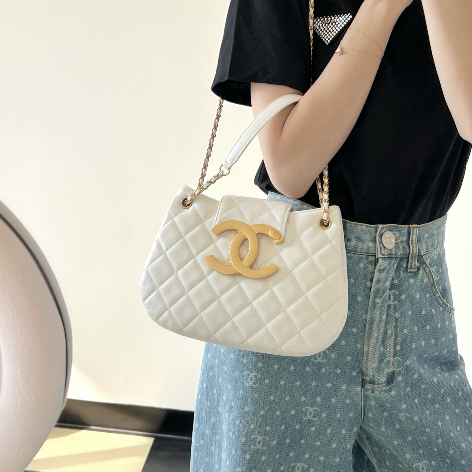 高仿Chanel*24C系列AS4609圓挎包白色大號免檢版
