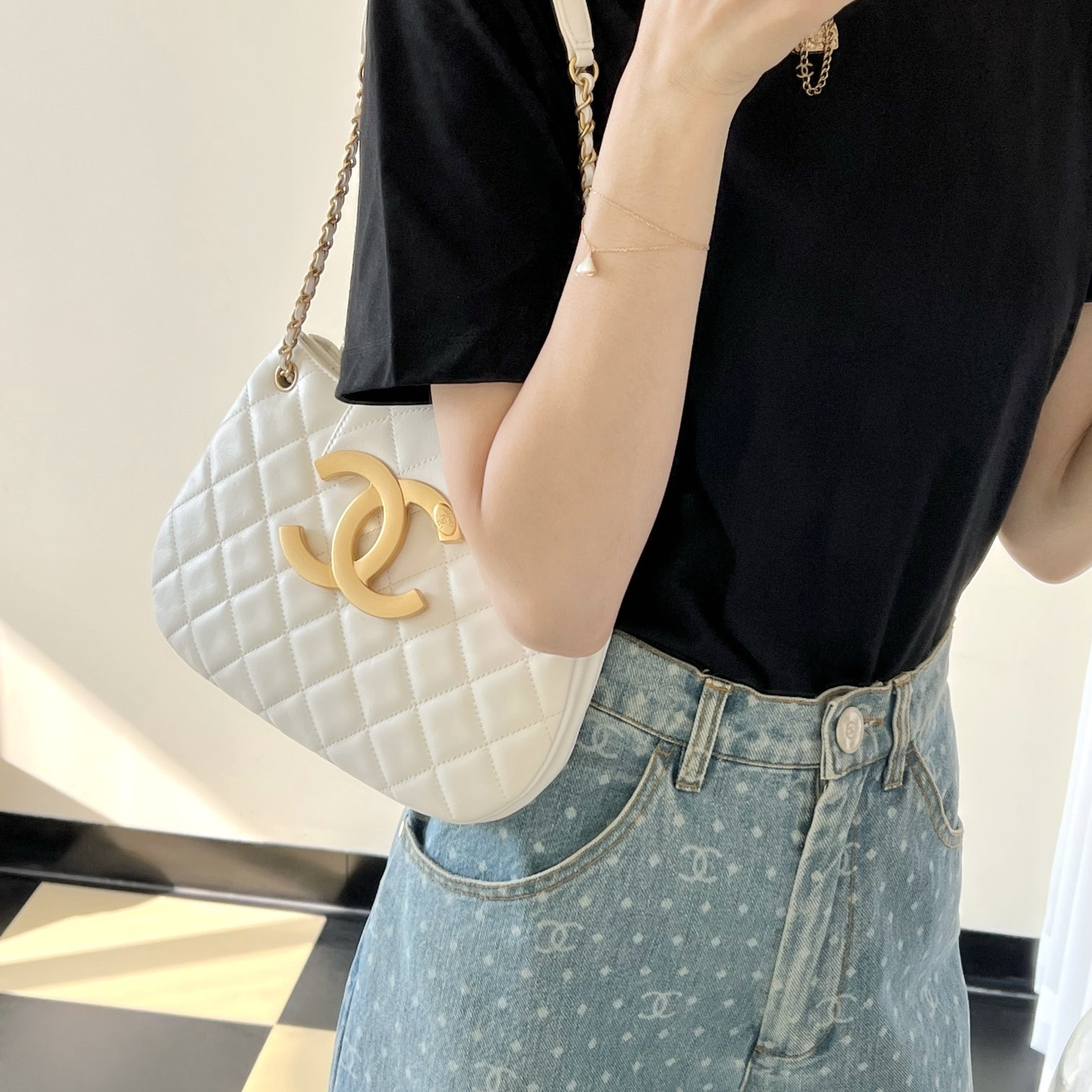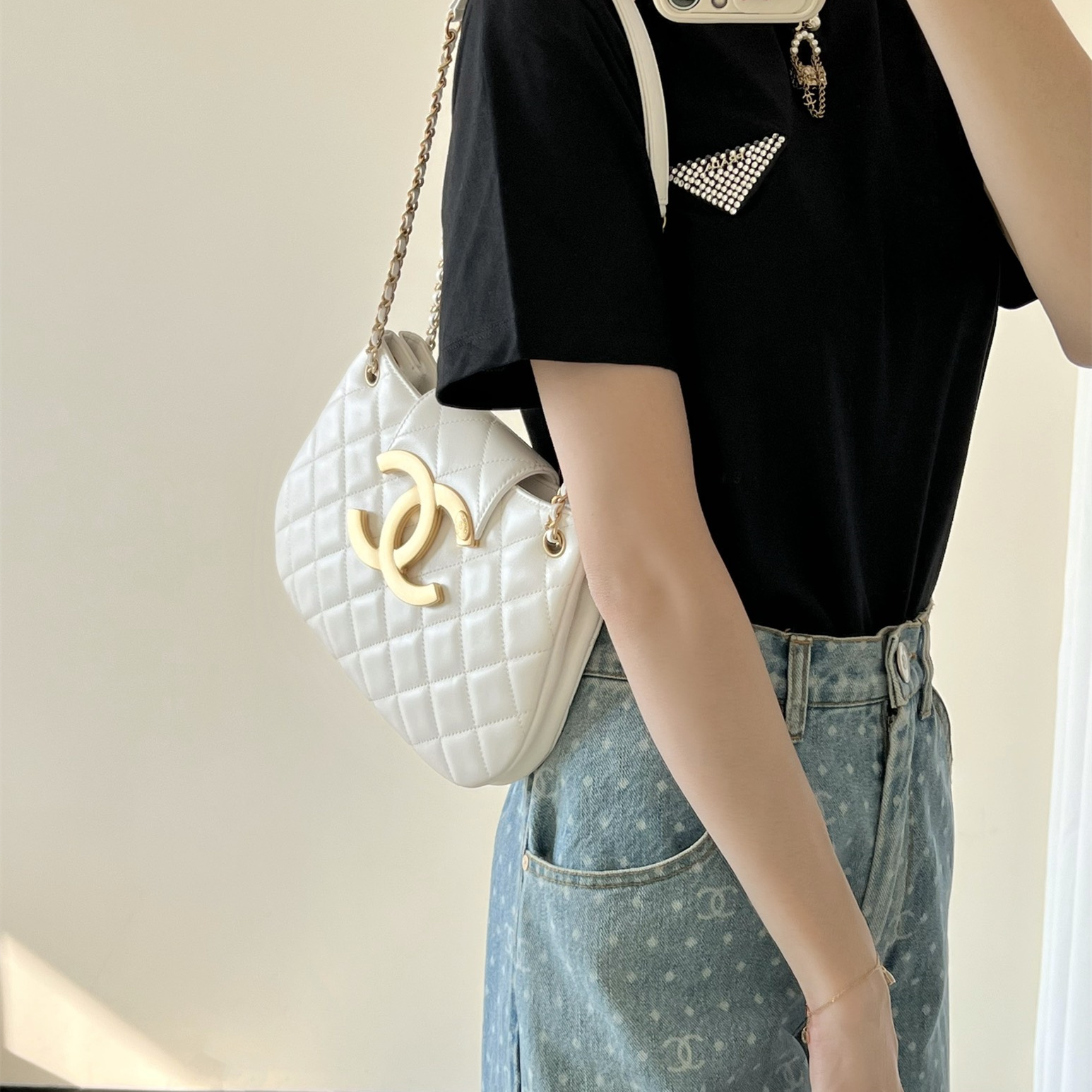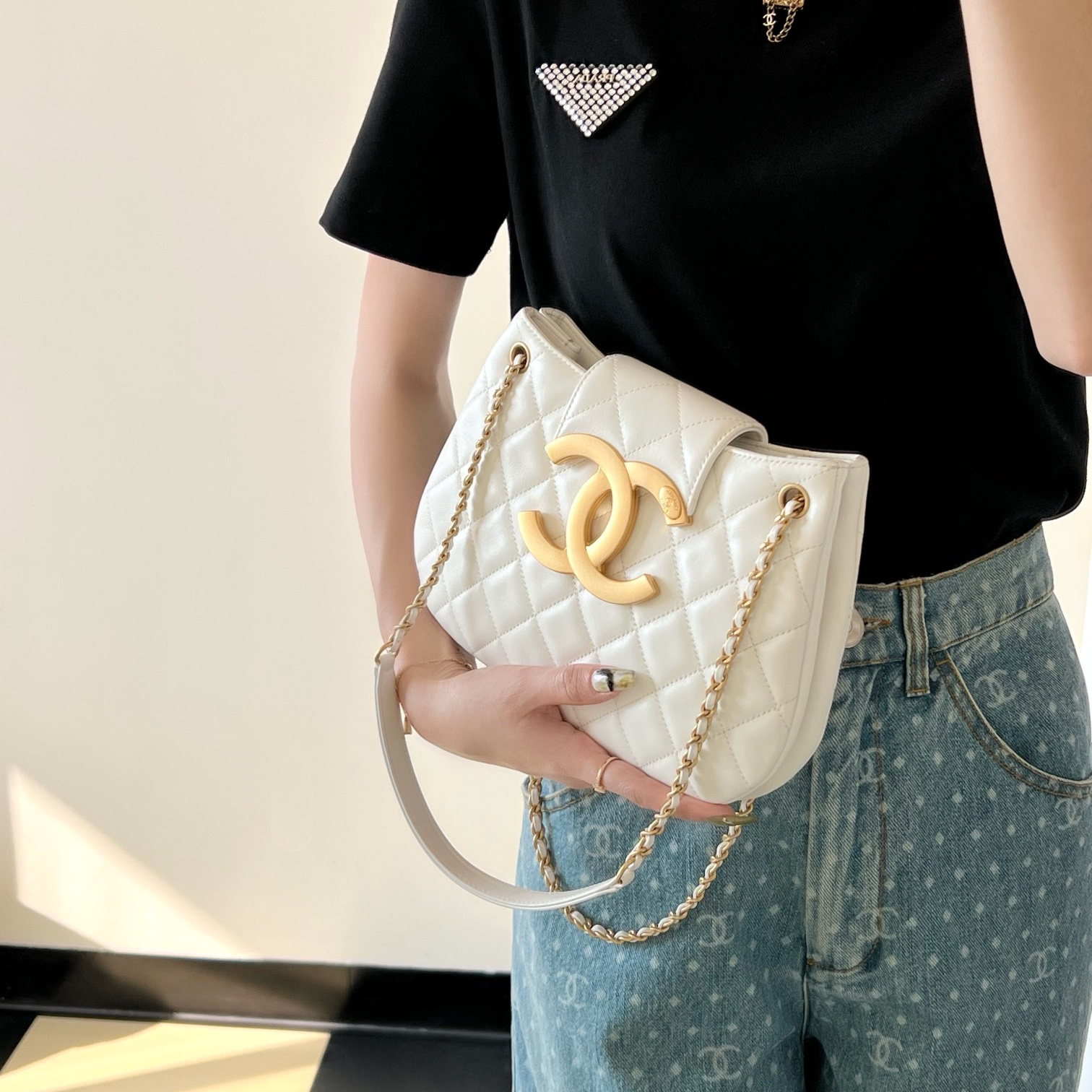 高仿Chanel*24C系列AS4609圓挎包白色大號免檢版