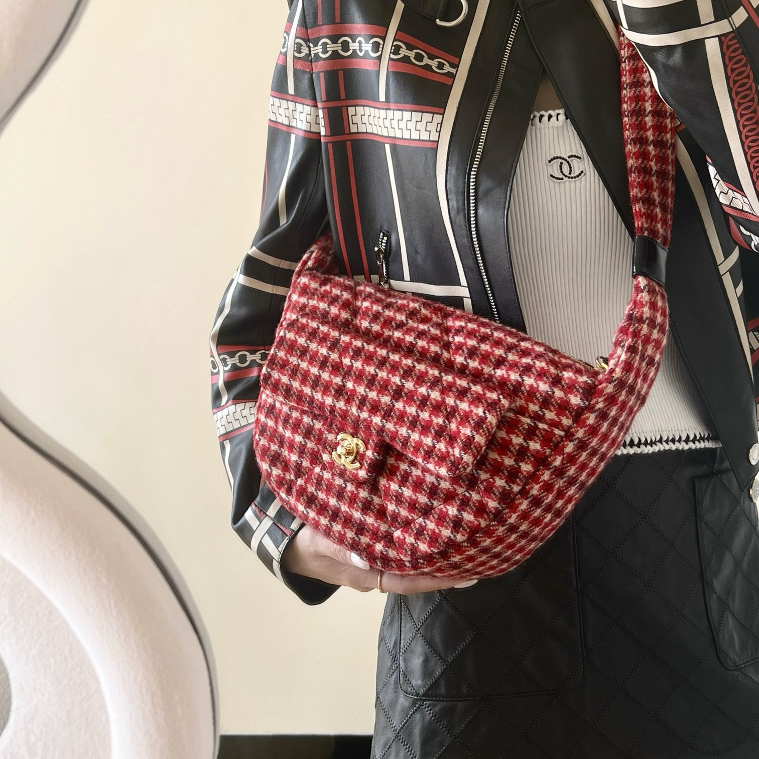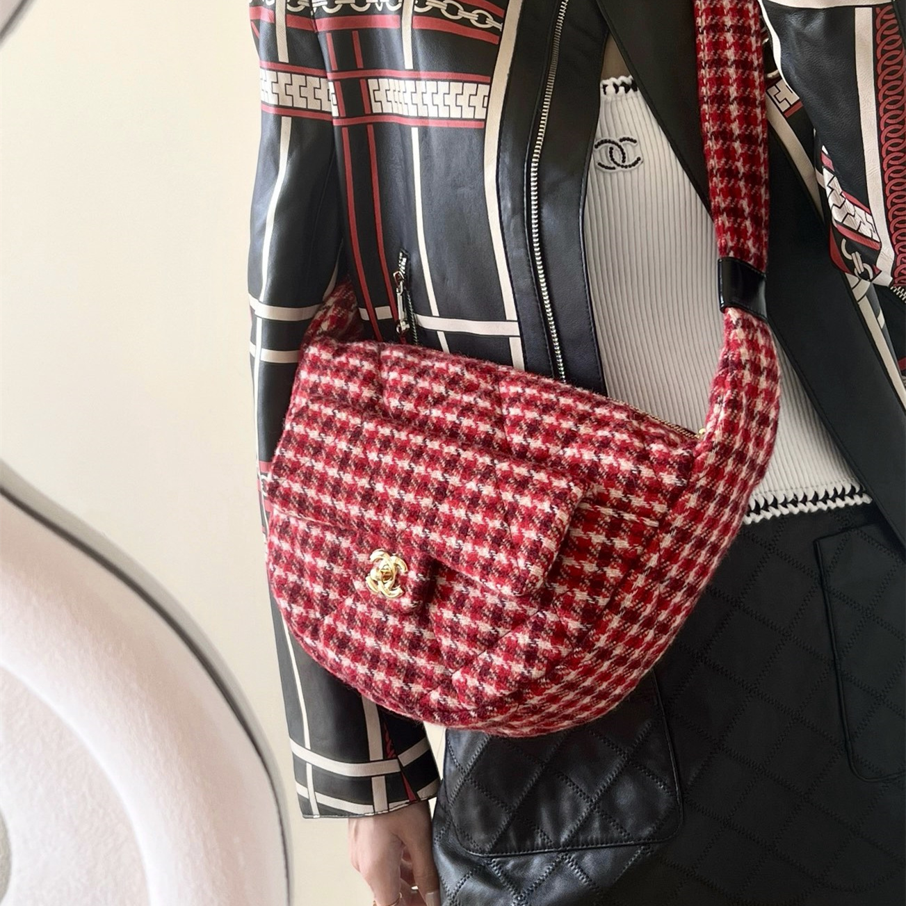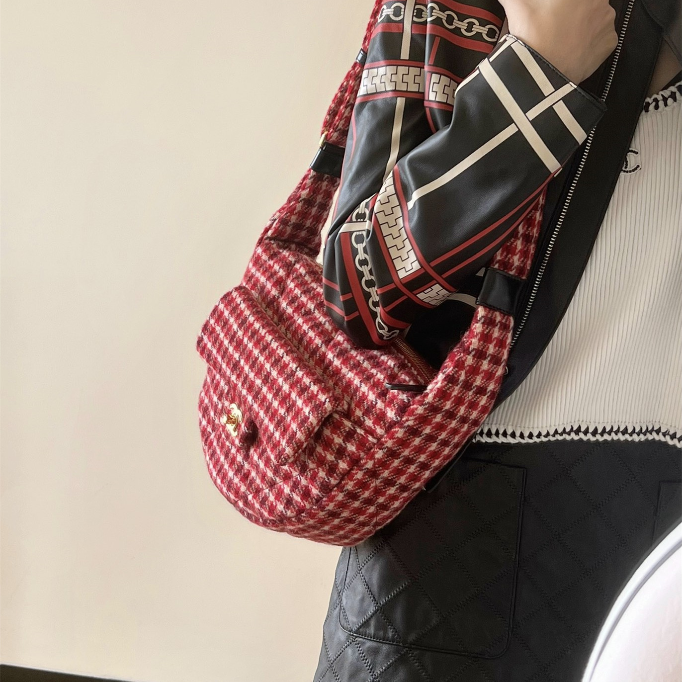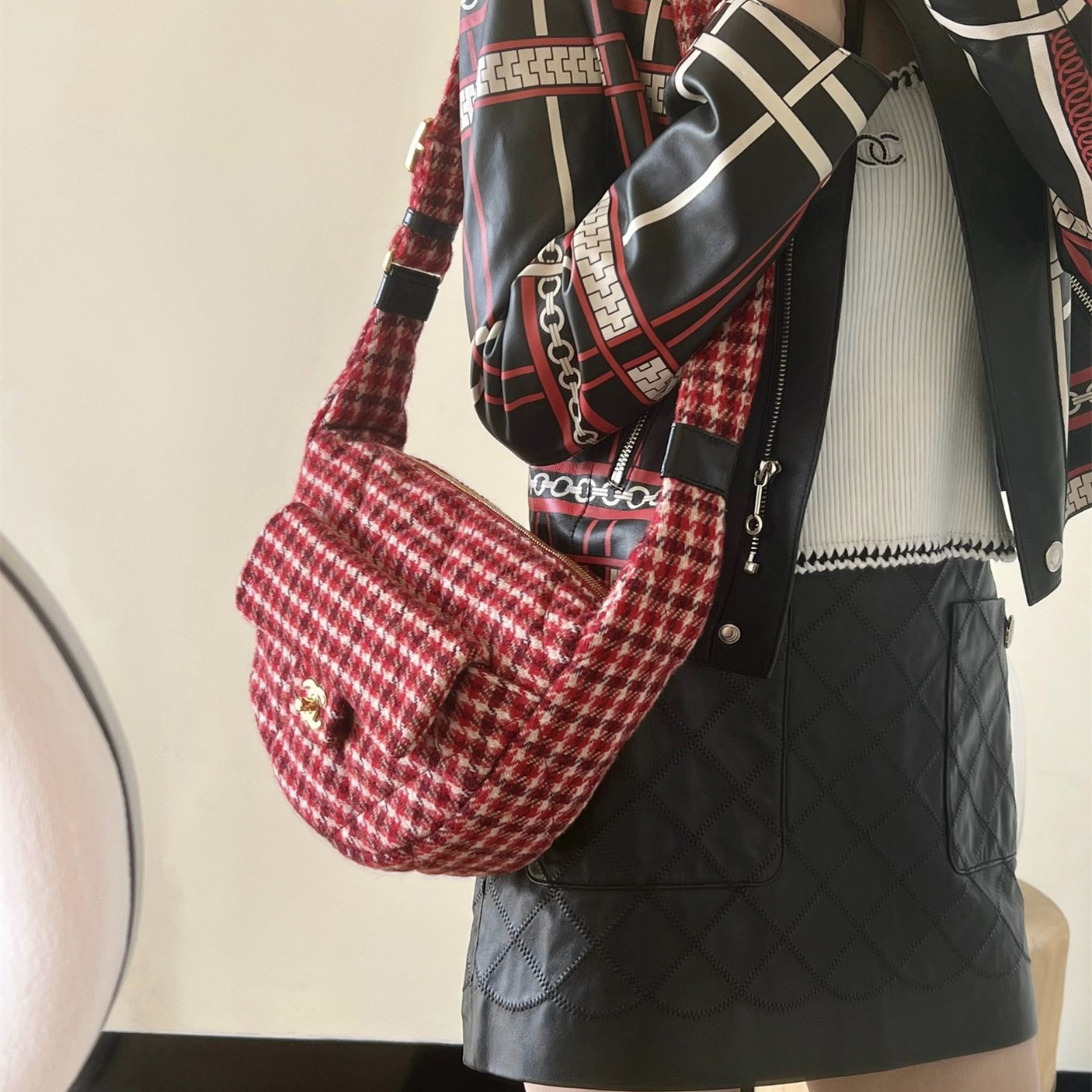 • 高仿Chanel*24N系列AS5052/Cocomeige Hobo半月包千鳥格免檢版