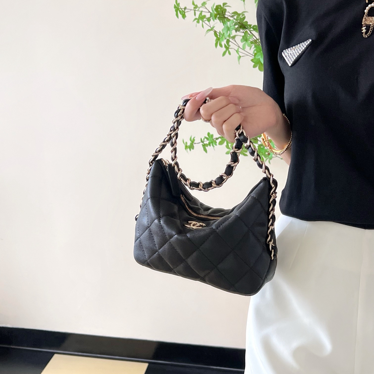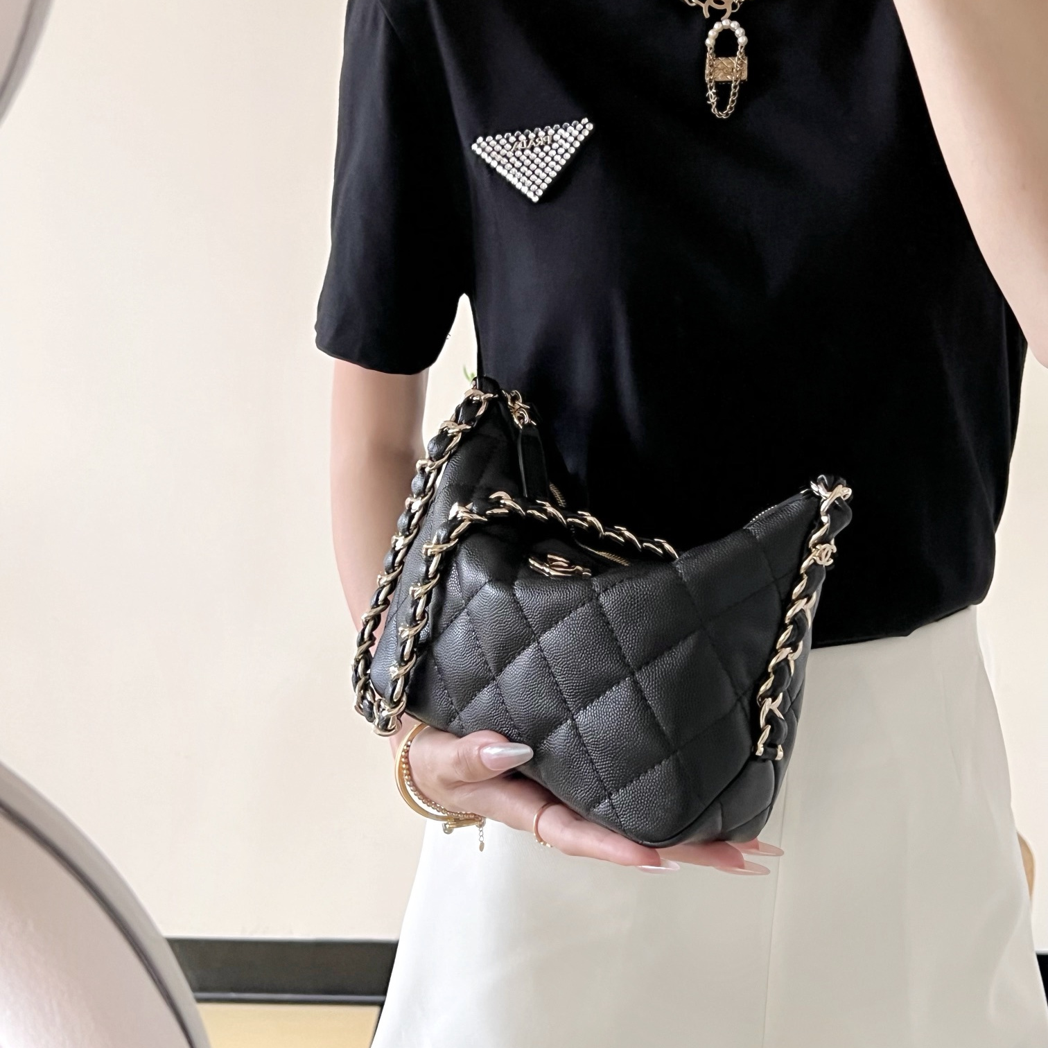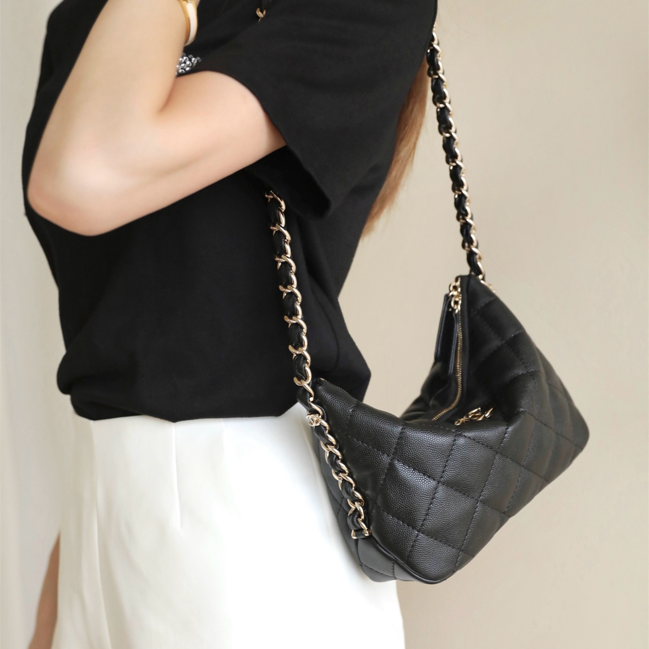 全新到貨高仿Chanel24P繫列春夏𝗛𝗼𝗯𝗼腋下包黑色小號.一款性價比最佳隱藏款𝗁𝗈𝖻𝗈餃子包是落落大方一枚,顏值派敲能裝~腋下餃子包輕巧隨和的攜帶方式❕很舒適很美好,是包界中的“實用王”