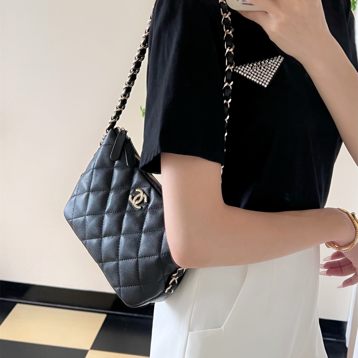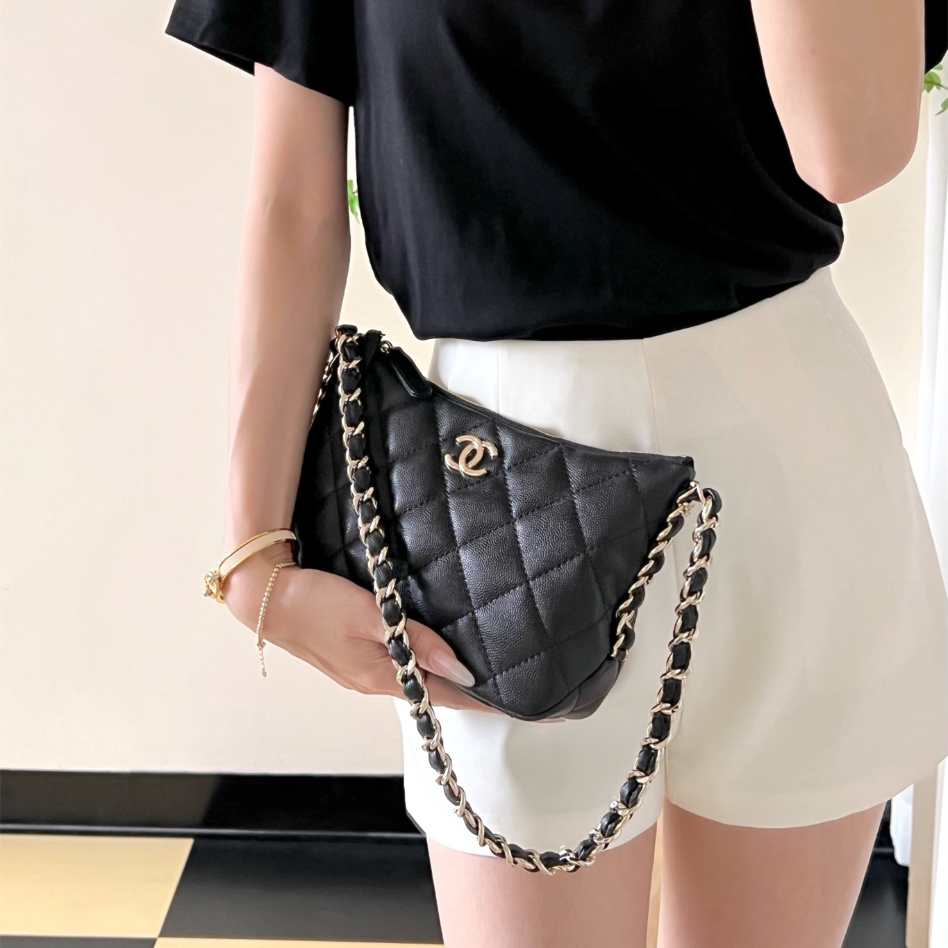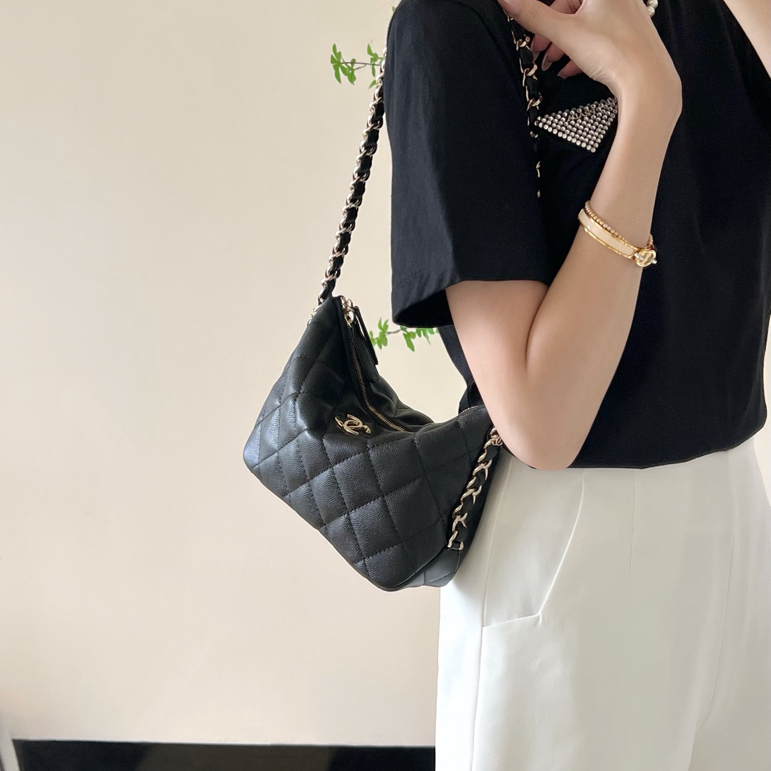 全新到貨高仿Chanel24P繫列春夏𝗛𝗼𝗯𝗼腋下包黑色小號.一款性價比最佳隱藏款𝗁𝗈𝖻𝗈餃子包是落落大方一枚,顏值派敲能裝~腋下餃子包輕巧隨和的攜帶方式❕很舒適很美好,是包界中的“實用王”