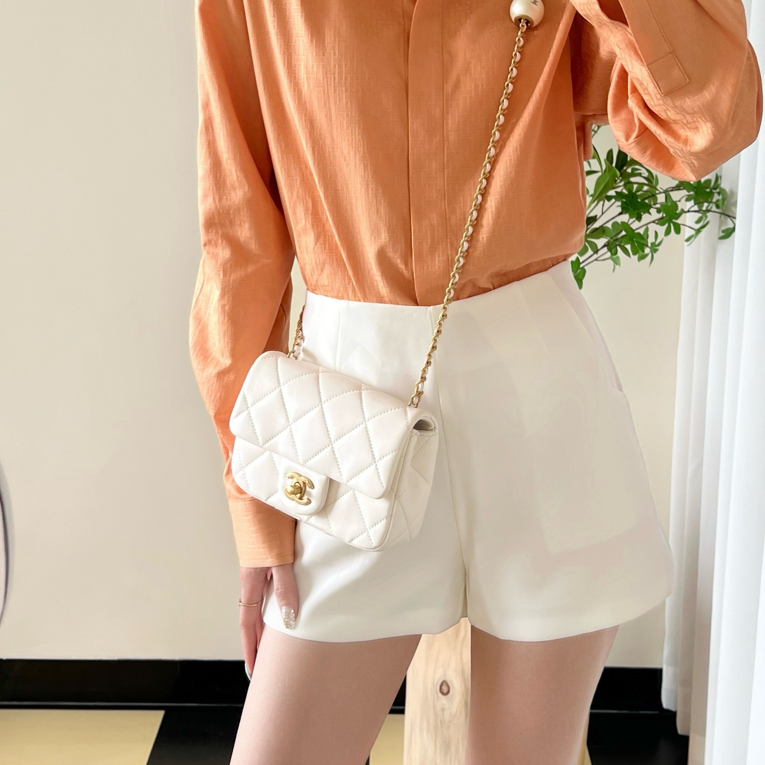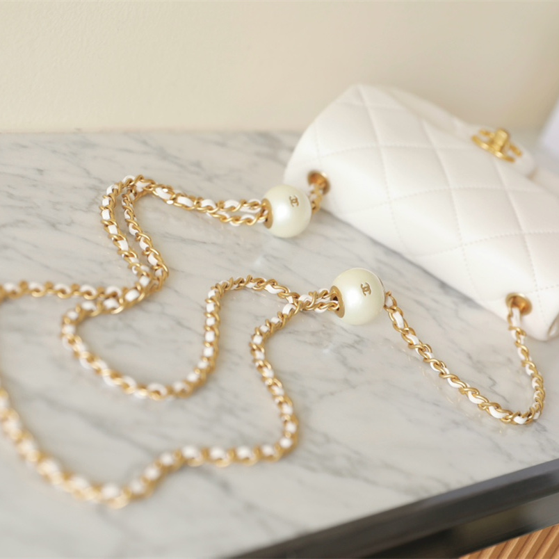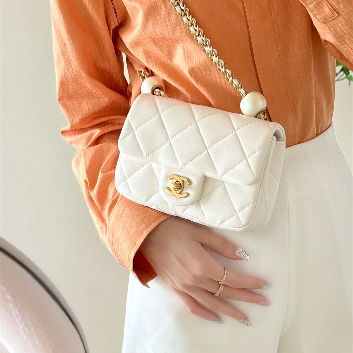 • 高仿Chanel*24S系列AS4861湯圓珍珠鏈條Mini袋白色免檢版