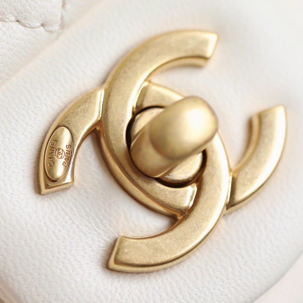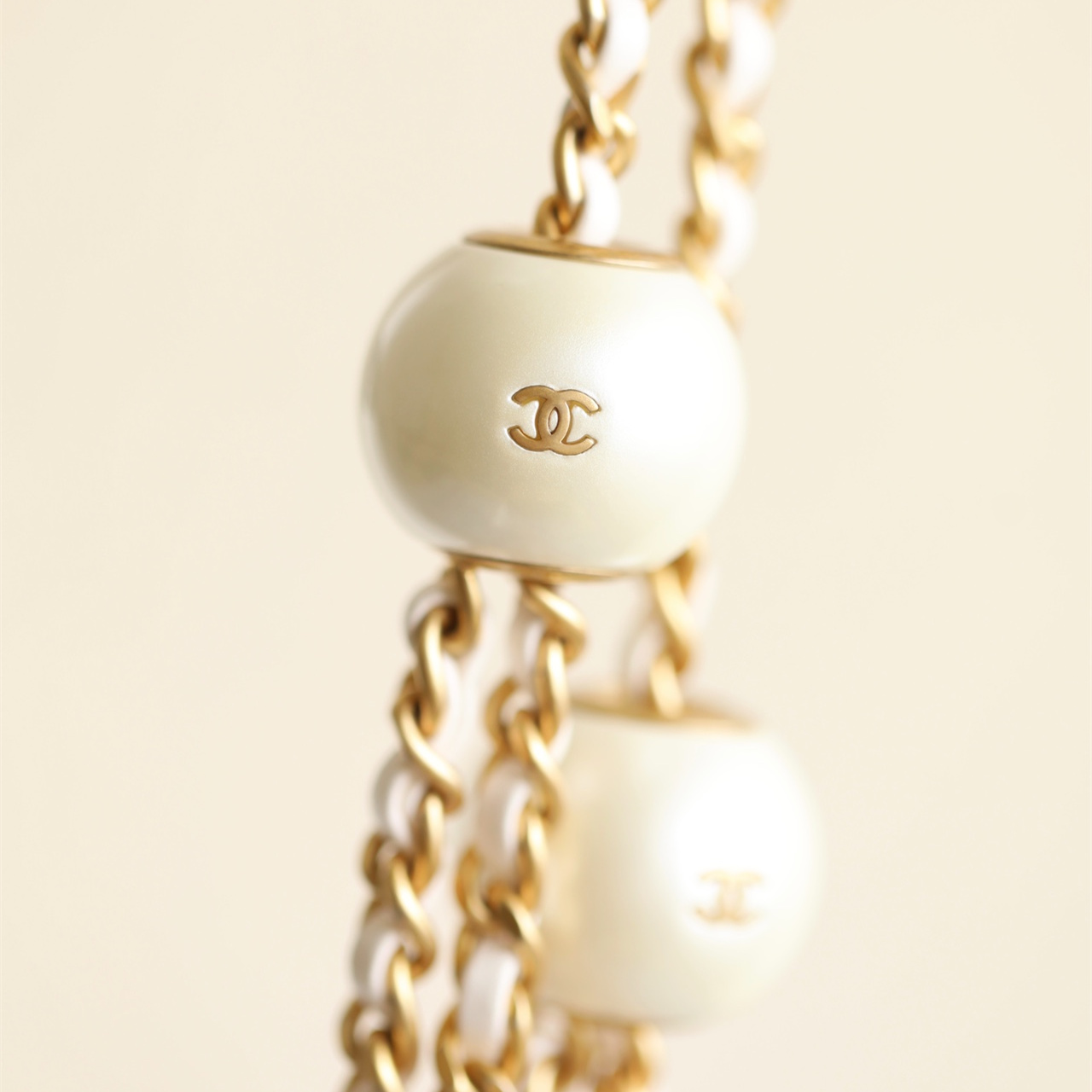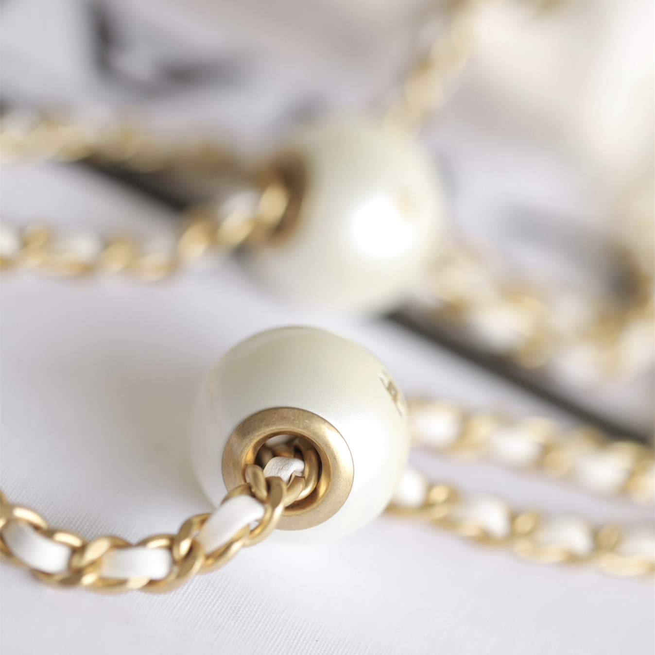 • 高仿Chanel*24S系列AS4861湯圓珍珠鏈條Mini袋白色免檢版