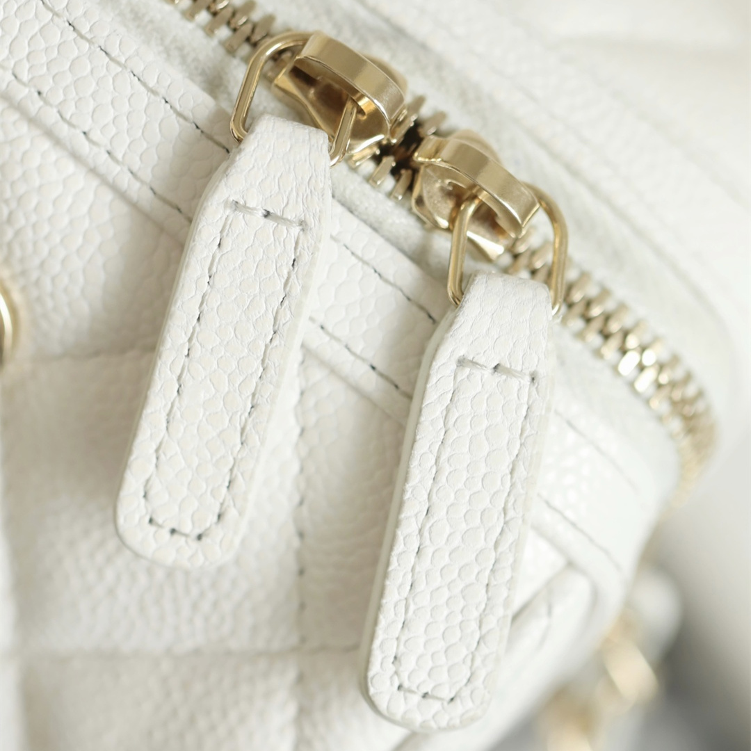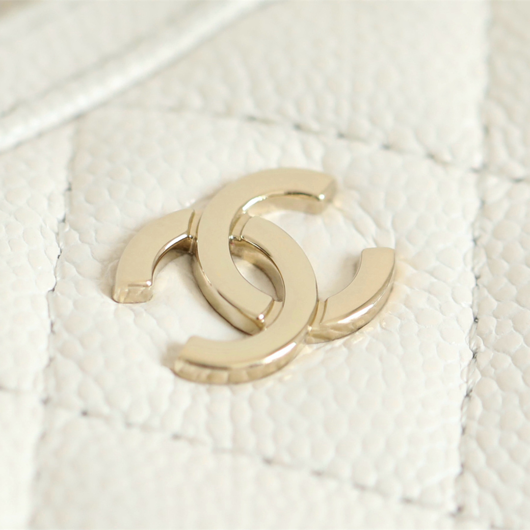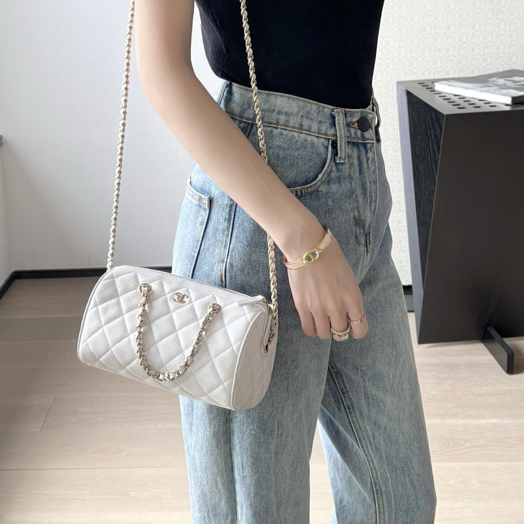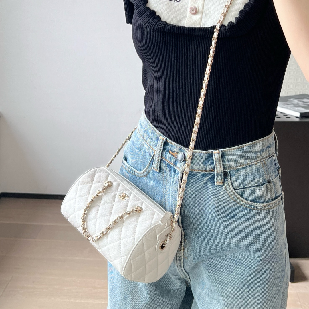 高仿Chanel*25P系列4385荔枝紋牛皮單肩包白色小號免檢版