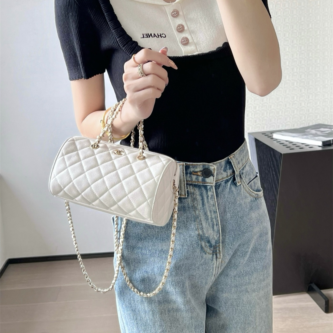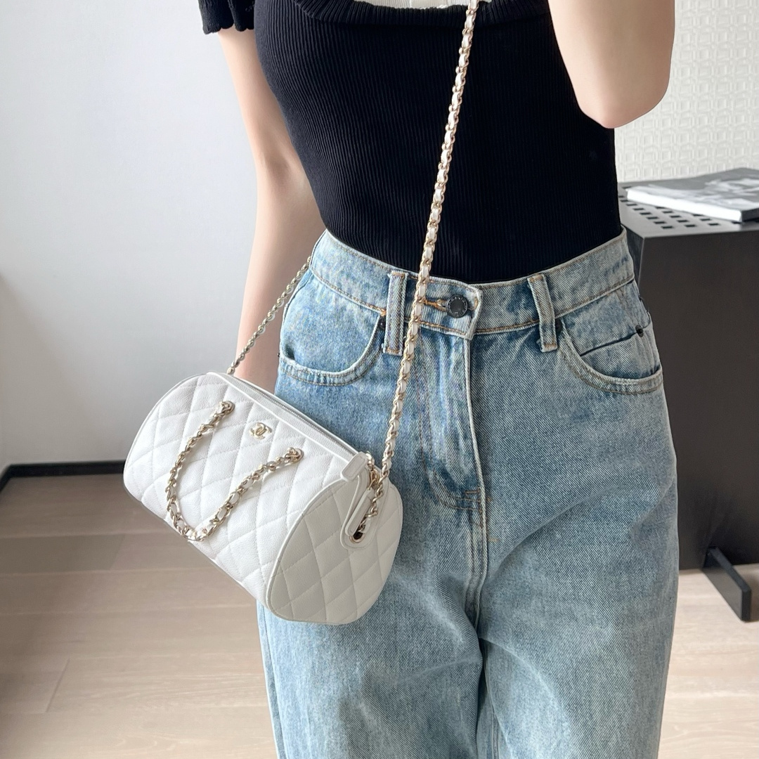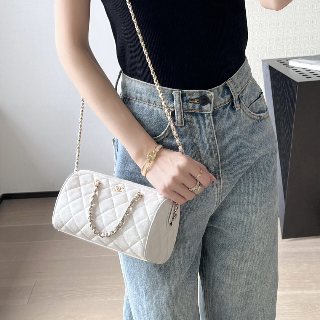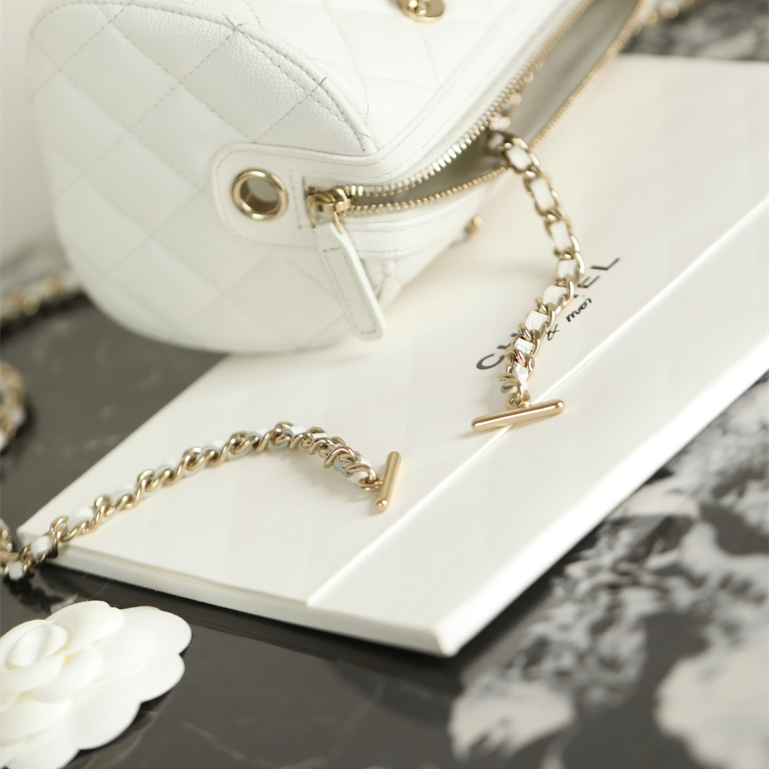 高仿Chanel*25P系列4385荔枝紋牛皮單肩包白色小號免檢版