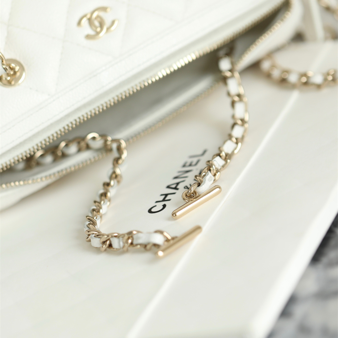 • 高仿Chanel*25P系列4385荔枝紋牛皮單肩包白色小號免檢版