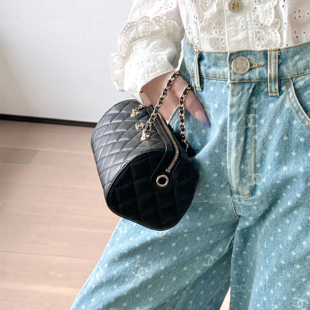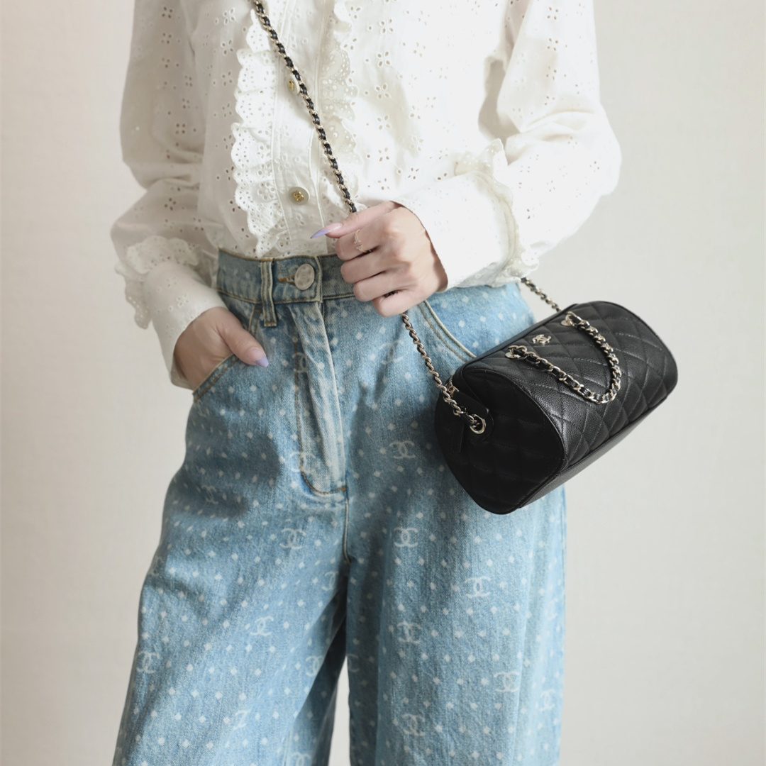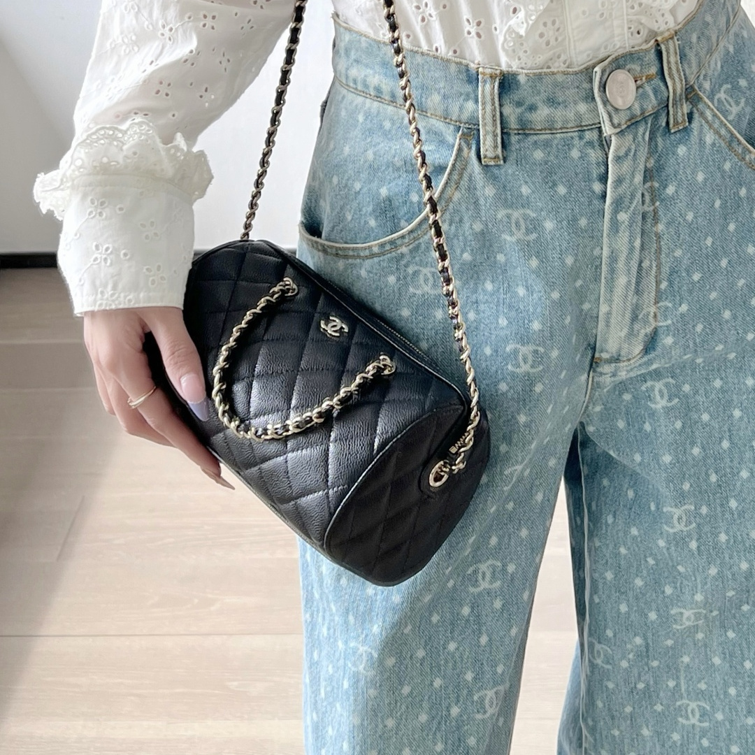 • 高仿Chanel*25P系列4474荔枝紋牛皮單肩包黑色小號免檢版