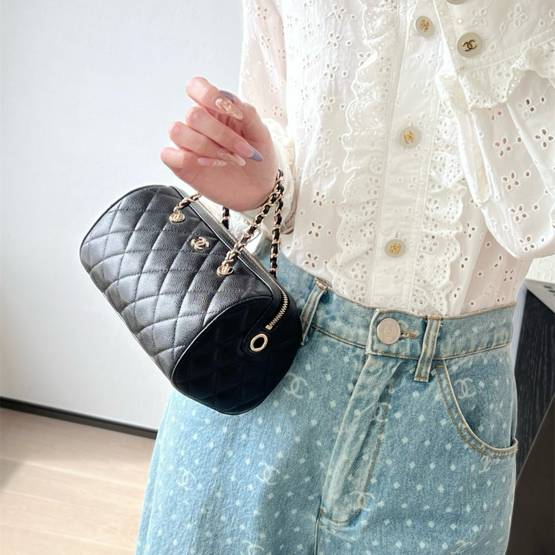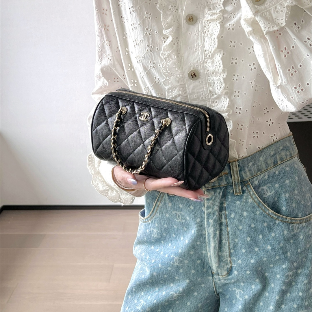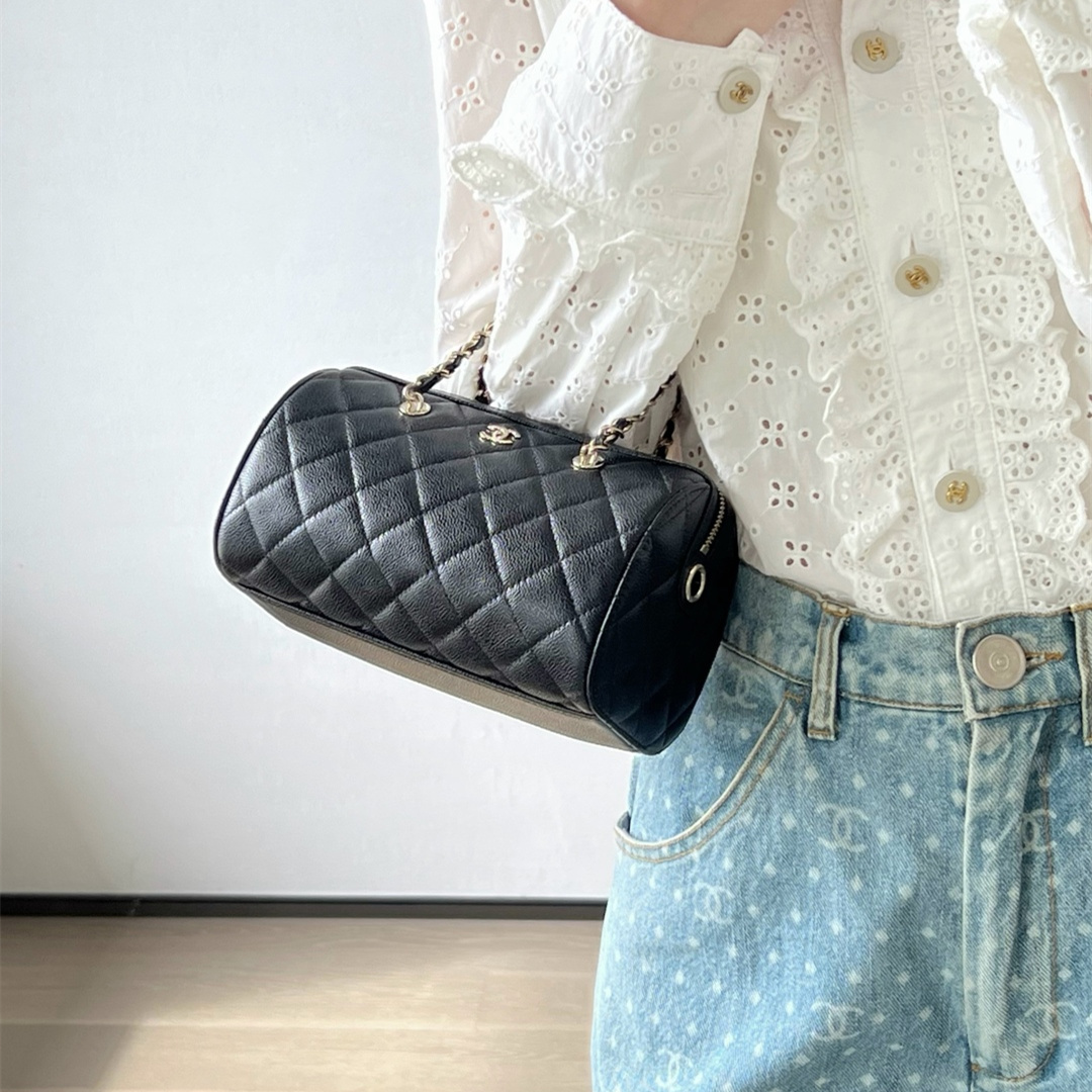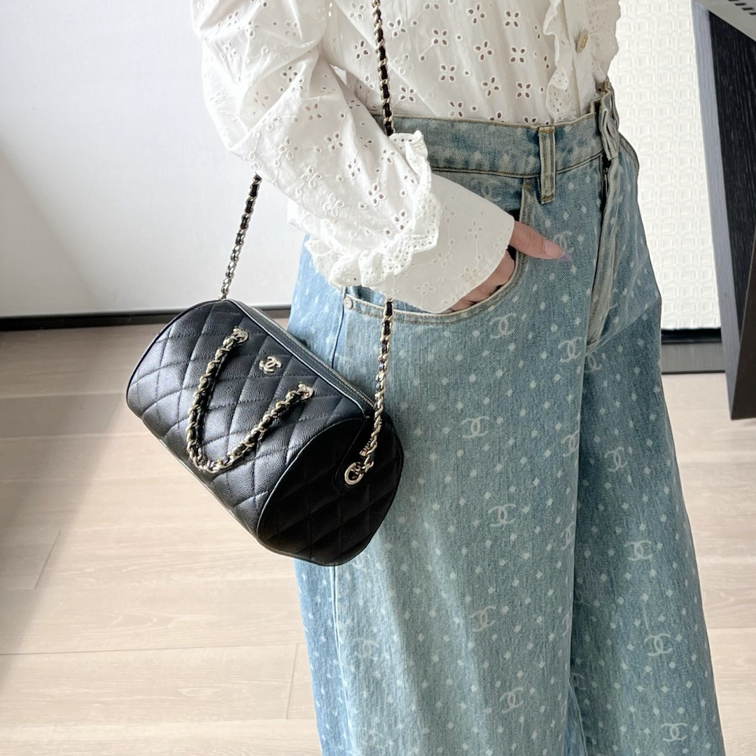 • 高仿Chanel*25P系列4474荔枝紋牛皮單肩包黑色小號免檢版