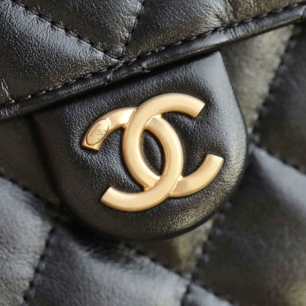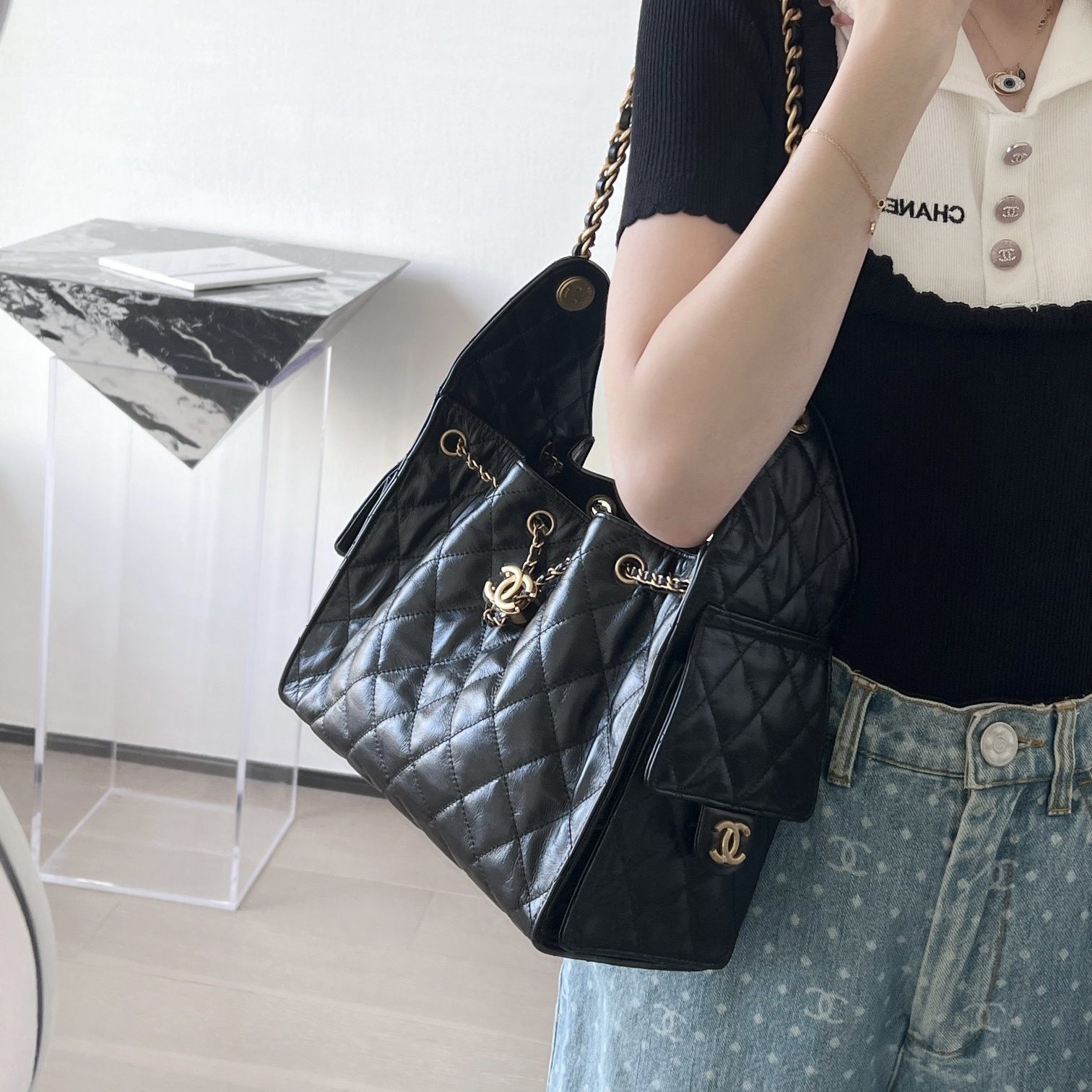 高仿Chanel*25P系列AS5293亮面牛皮單肩購物袋小號黑色免檢版