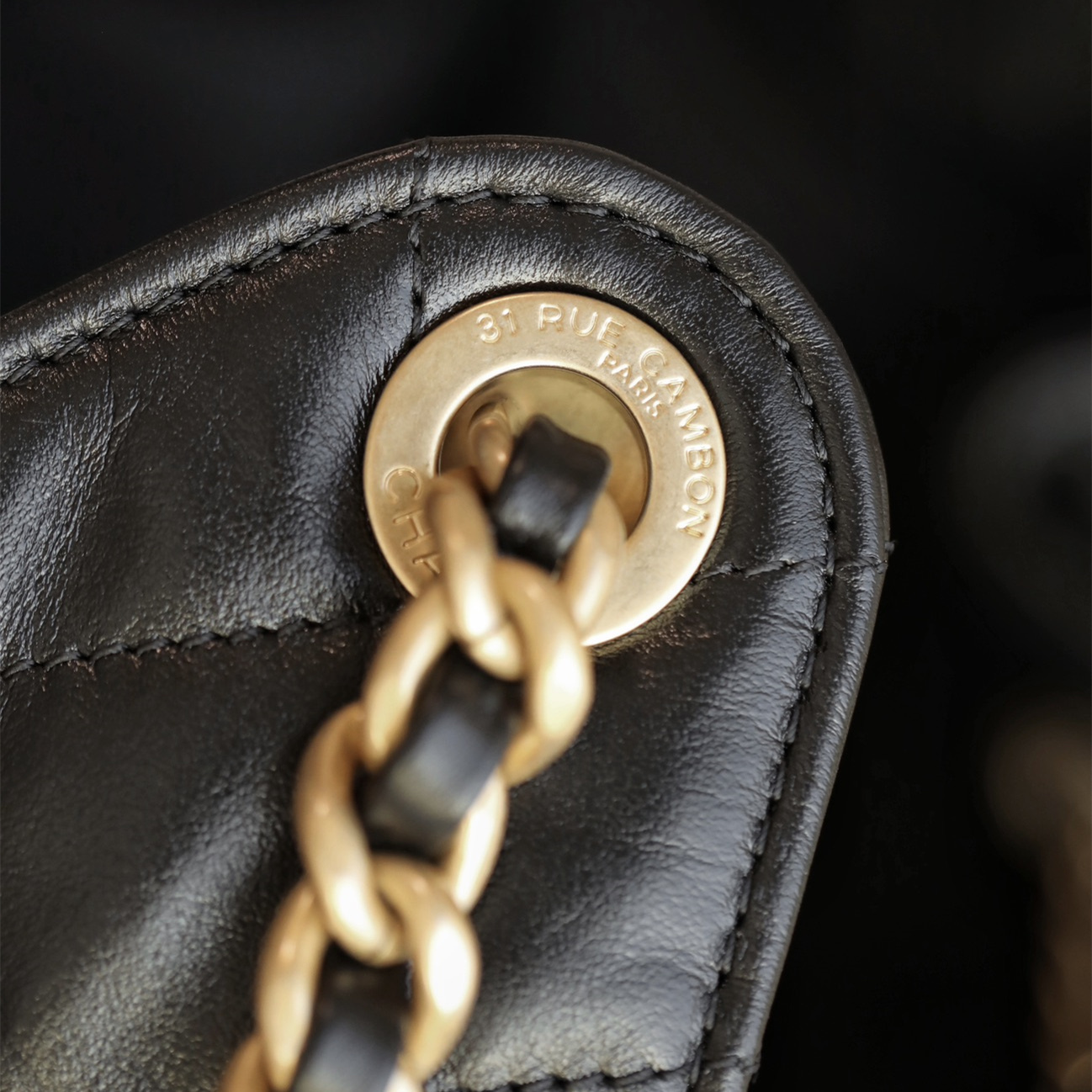 • 高仿Chanel*25P系列AS5293亮面牛皮單肩購物袋小號黑色免檢版