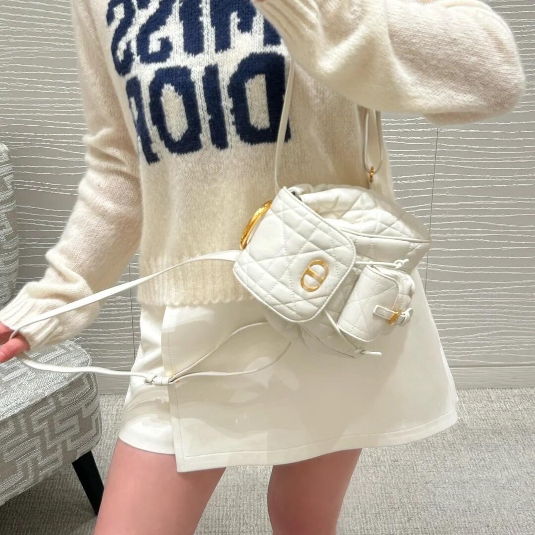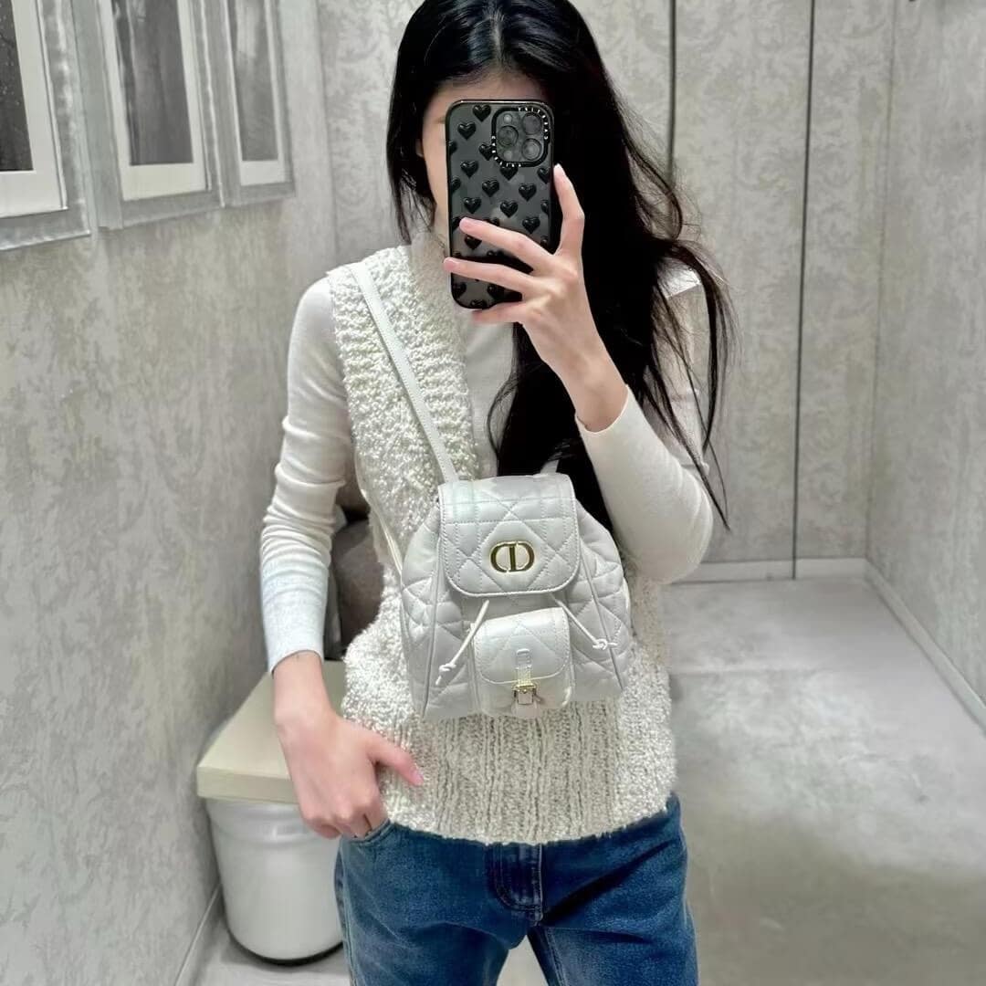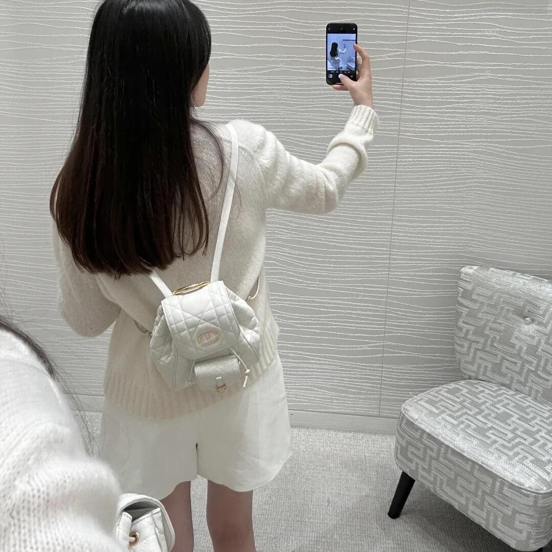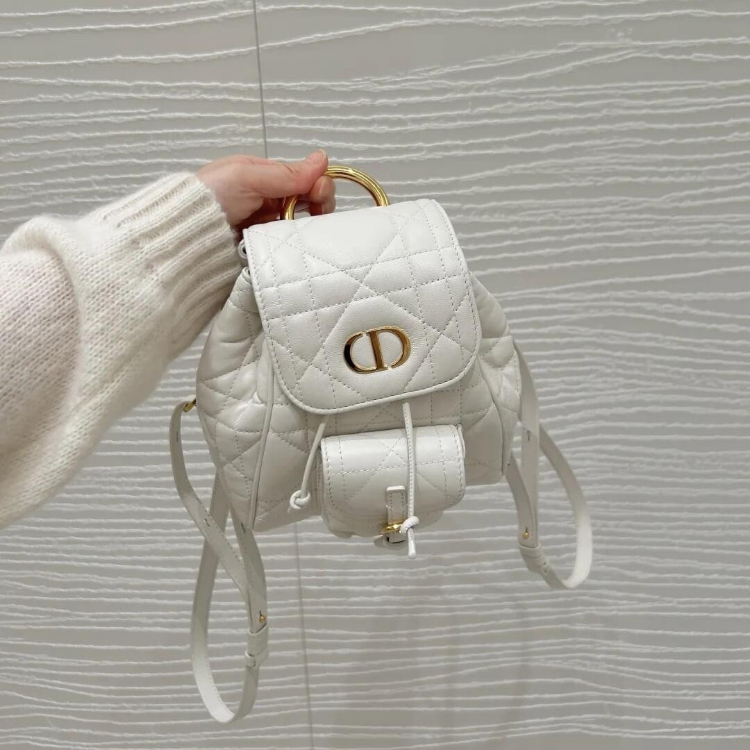 • 高仿Dior*Caro系列M6302M030小羊皮雙肩包白色小號免檢版