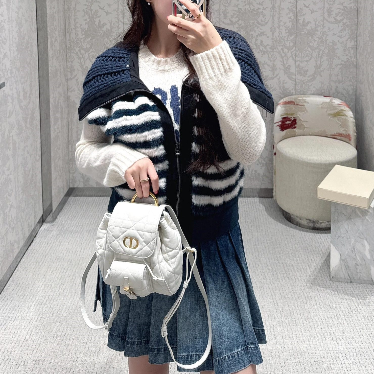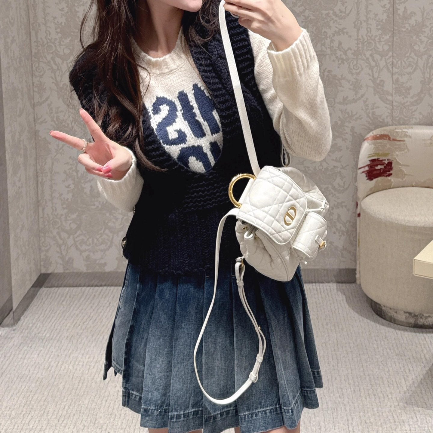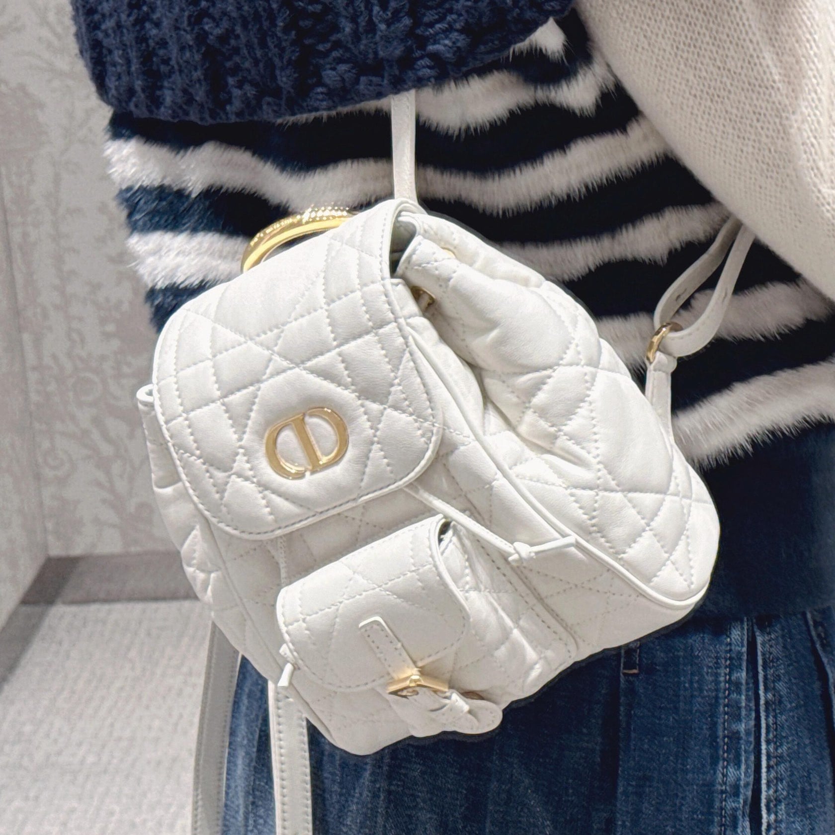 • 高仿Dior*Caro系列M6302M030小羊皮雙肩包白色小號免檢版