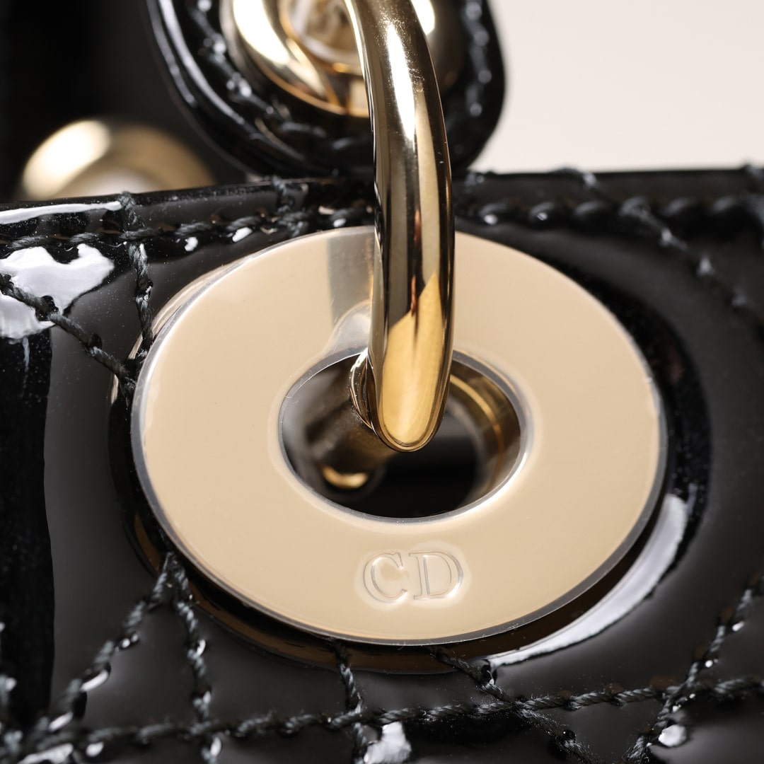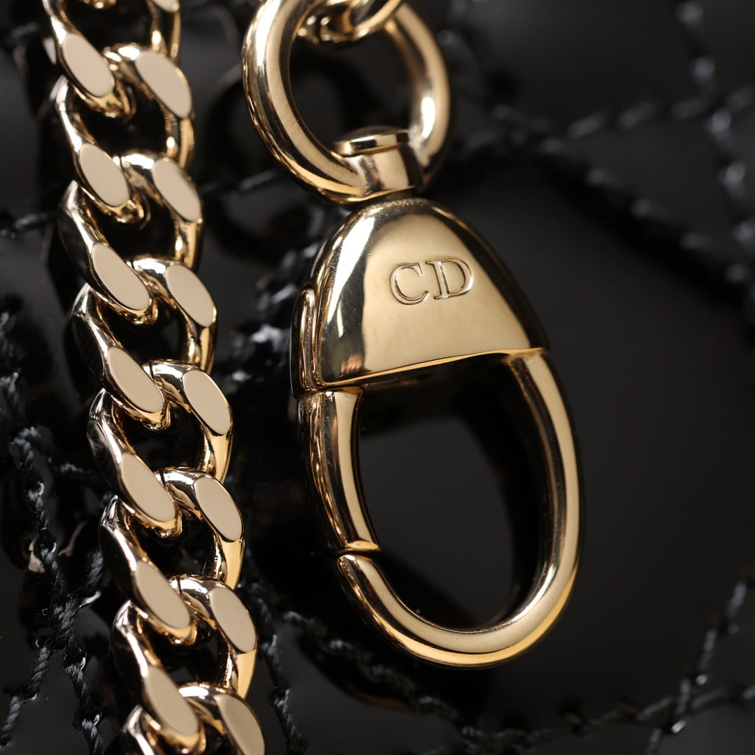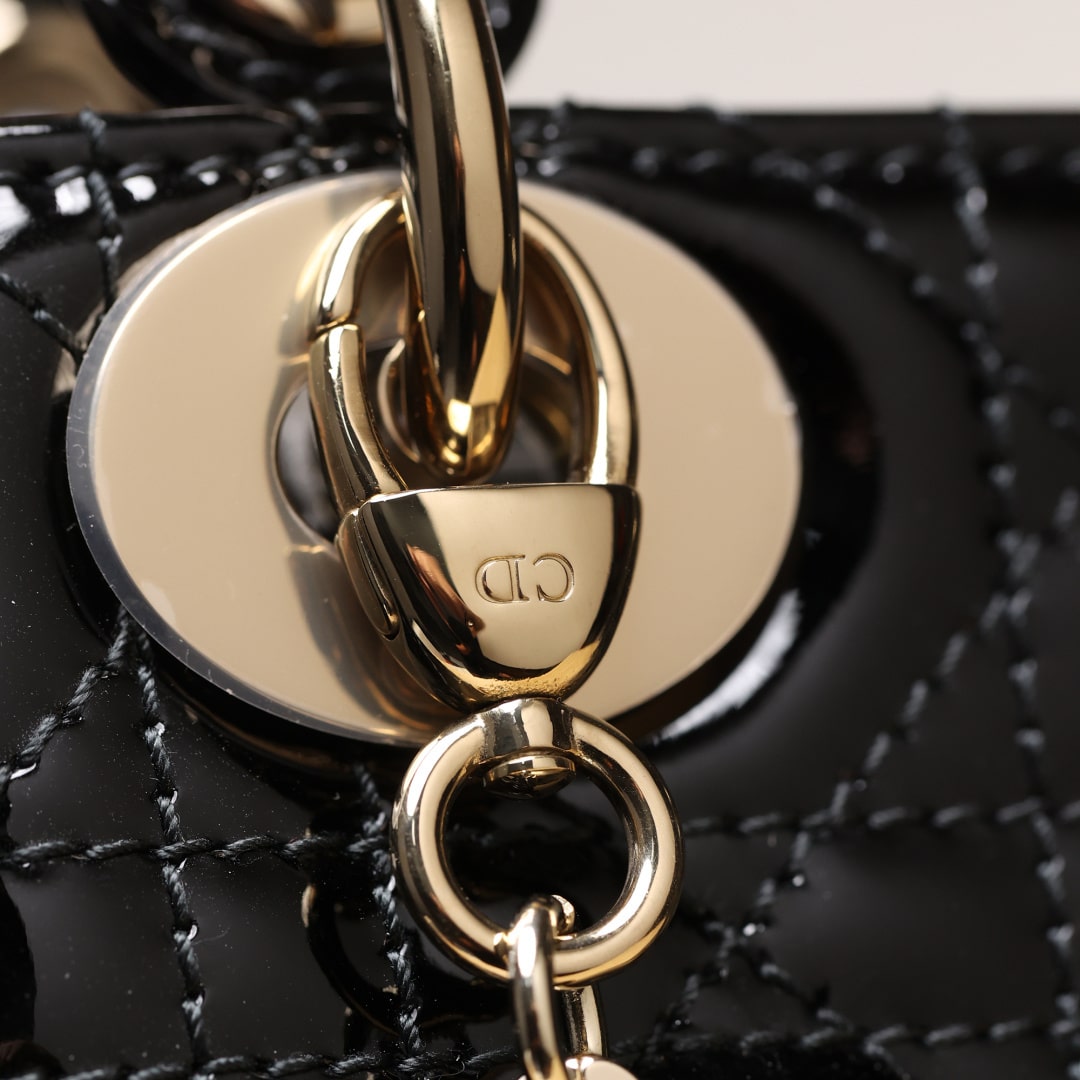 • 高仿Dior*Lady系列M0505M900黑色漆皮三格單肩包Mini免檢版