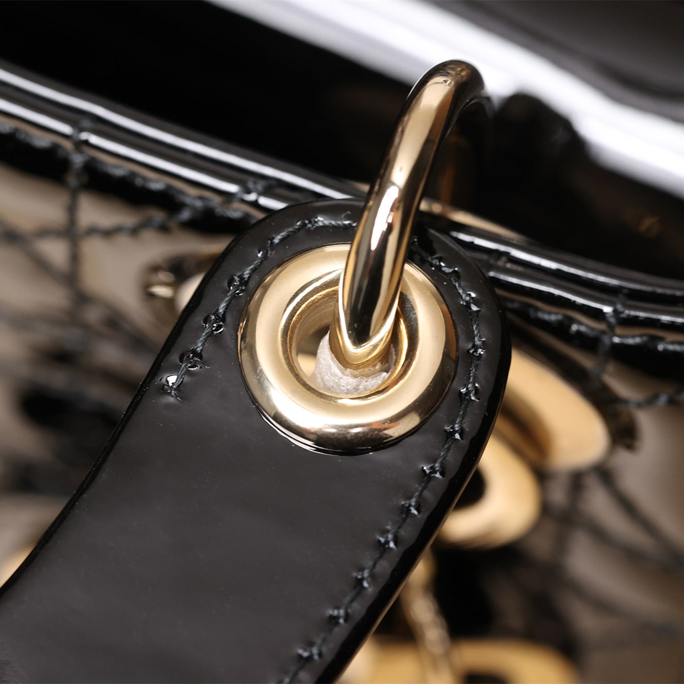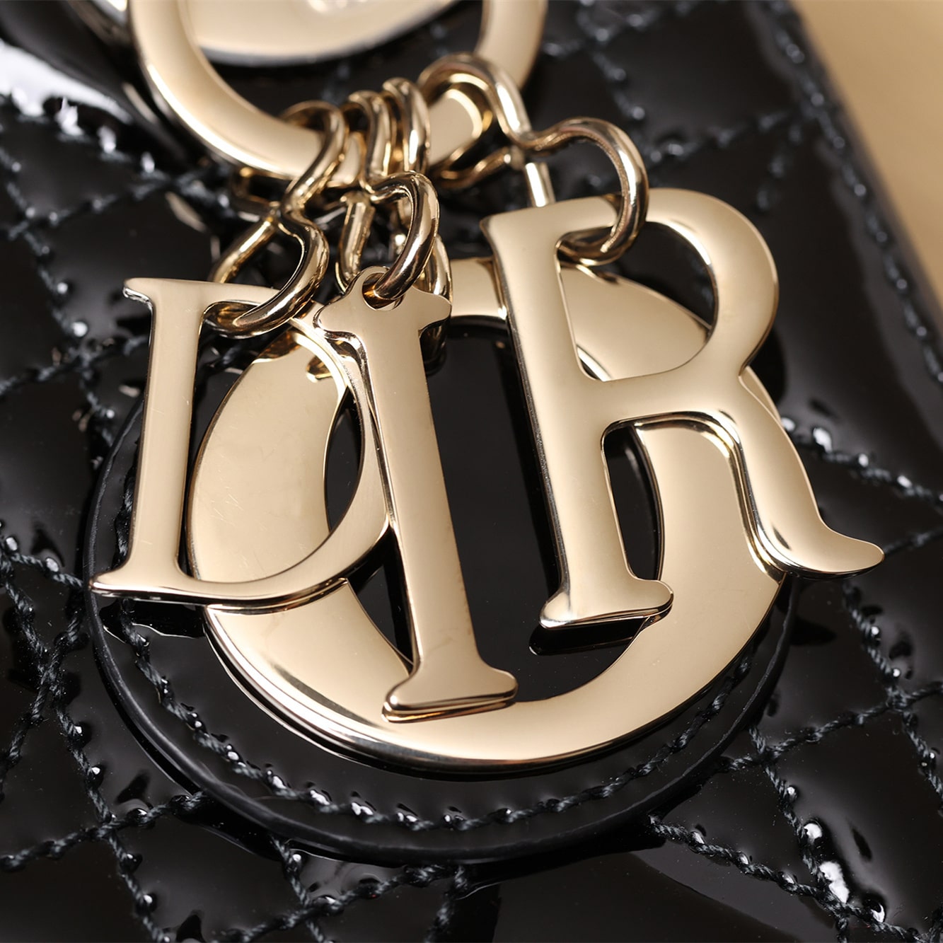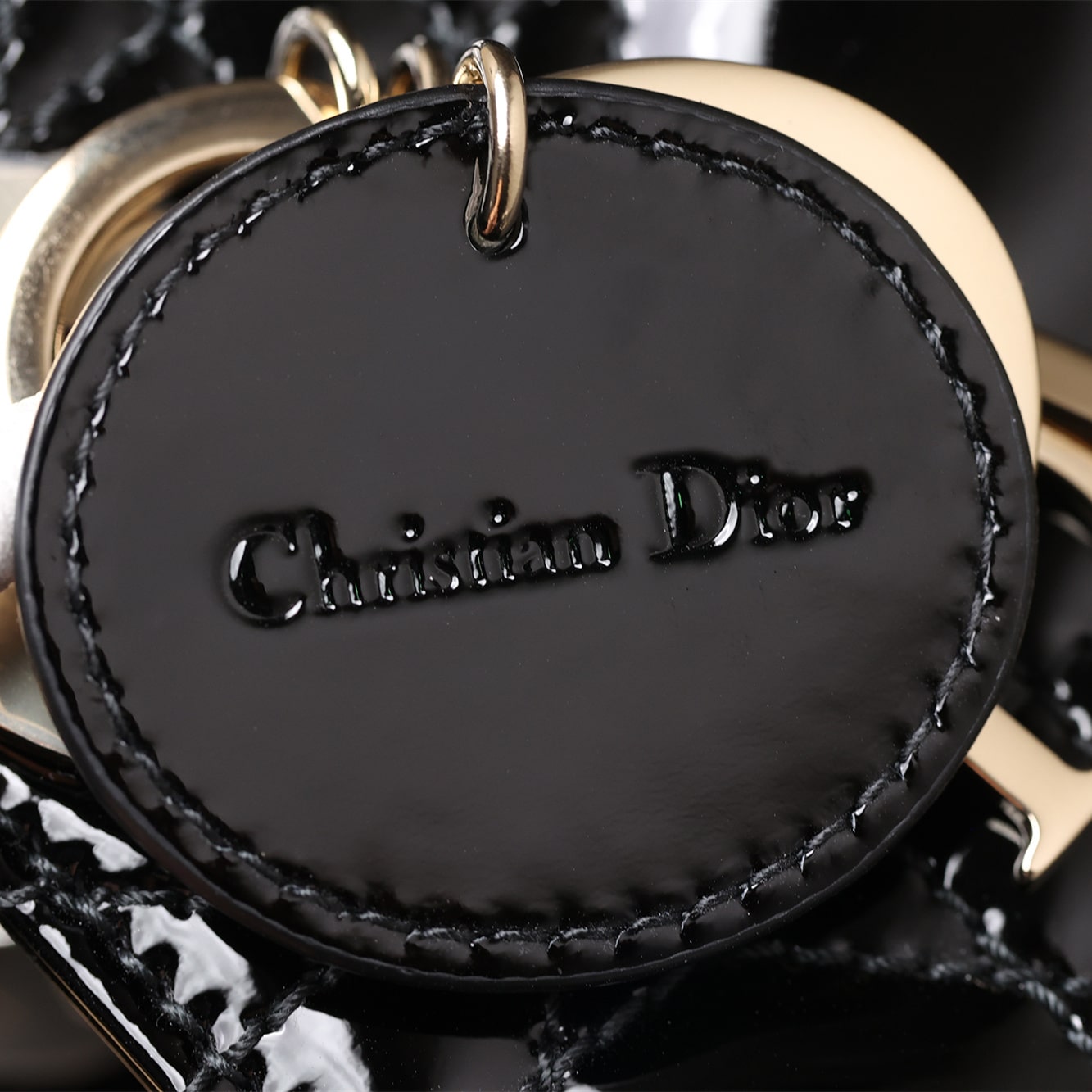 • 高仿Dior*Lady系列M0505M900黑色漆皮三格單肩包Mini免檢版