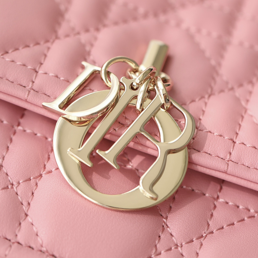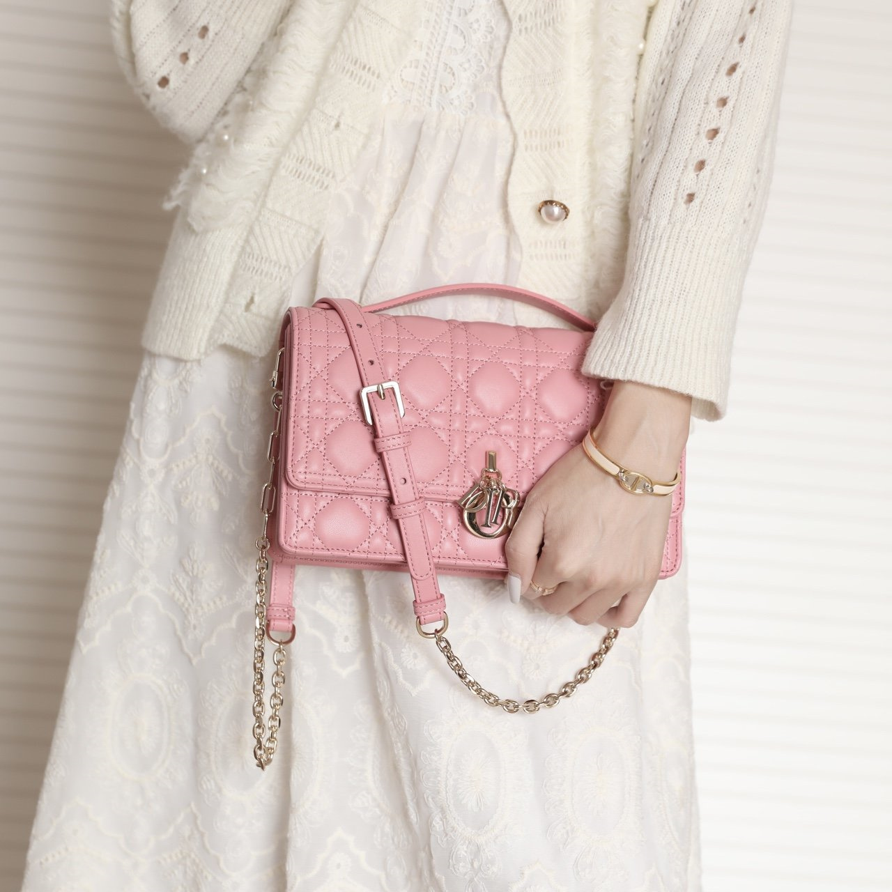 • 高仿DiorMissCaro系列早春單肩包蜜桃粉羊皮免檢版