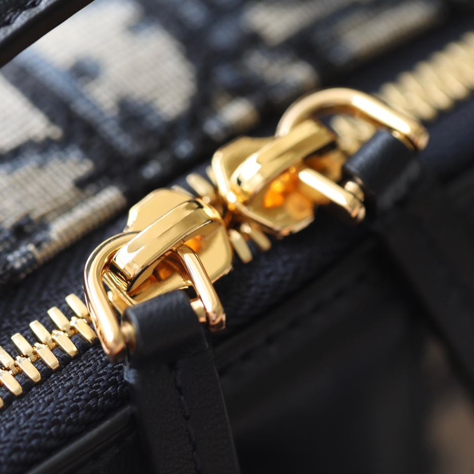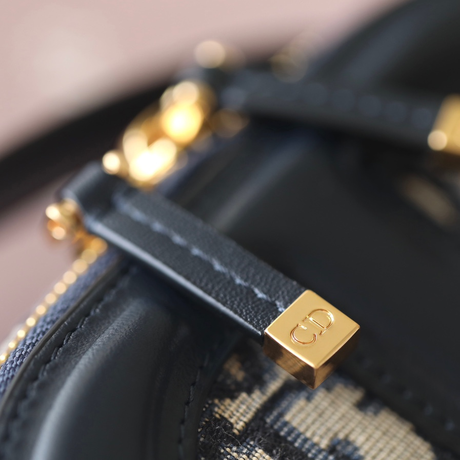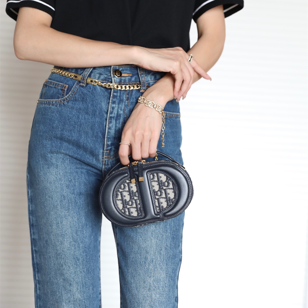 高仿Dior官網全新推出Signature系列圓形相機包.包型結構以橢圓形搭配皮革CD大LOGO設計為品牌辨識度.按照復古老式相機包作為新穎的設計理念.高仿Dior包袋採用黑色原廠真牛皮材質結合迪奧最經典的 Oblique印花帆布刺繡.相輔相成別具一格毫無違和感.