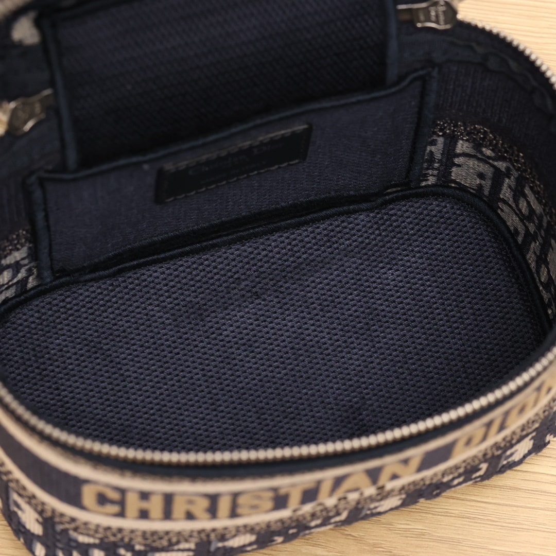 這款Dior*TravelVanity手袋通體飾以藍色Oblique印花.正面飾以Christian*Dior*Paris標誌.搭配可拆卸克調節的刺繡肩帶.復刻工藝層面是使用到目前高科技工藝打造.激光技術打印.並不是此前的電腦打印技術.從花紋到刺繡部分均為1:1還原.