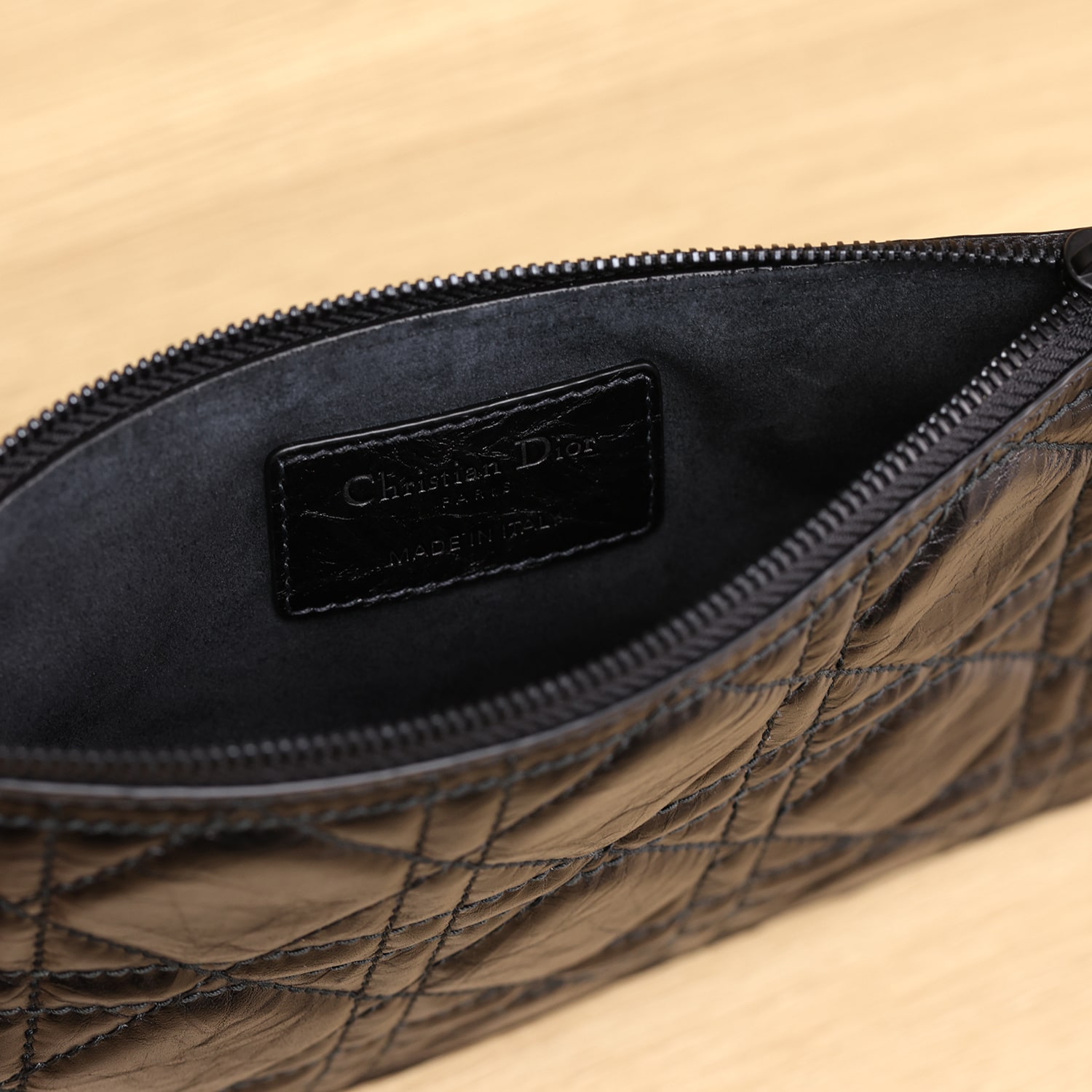 高仿Dior*Toujours系列M2822M900橫版蠟皮手提袋黑色小號免檢版