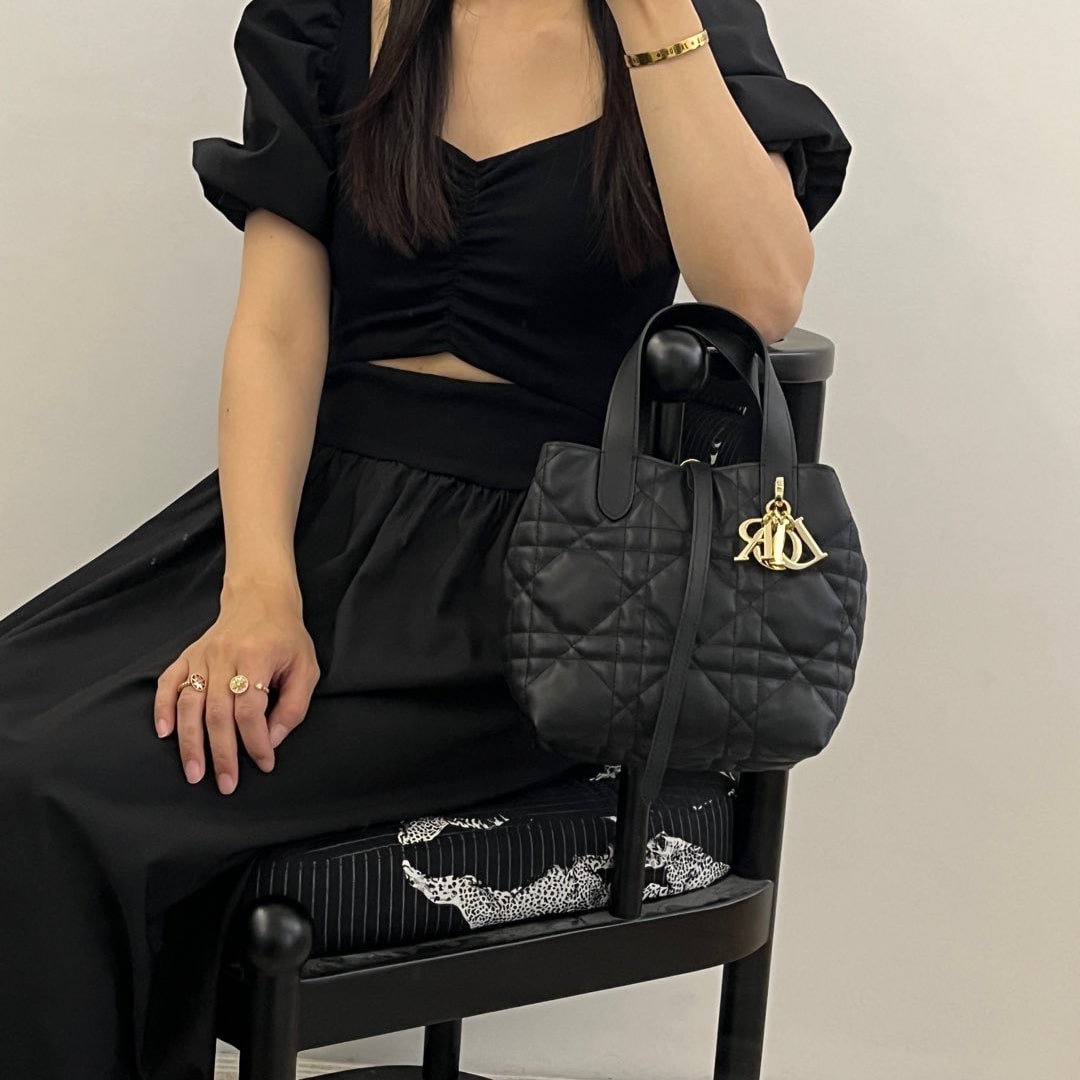 高仿Dior*Toujours系列M2835M900菜籃子豎版小號黑色免檢版