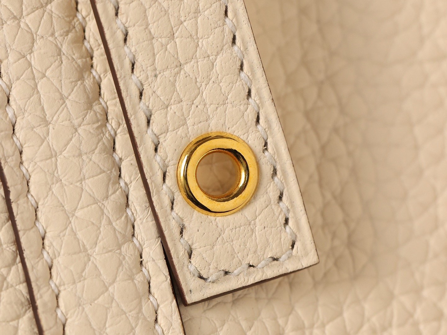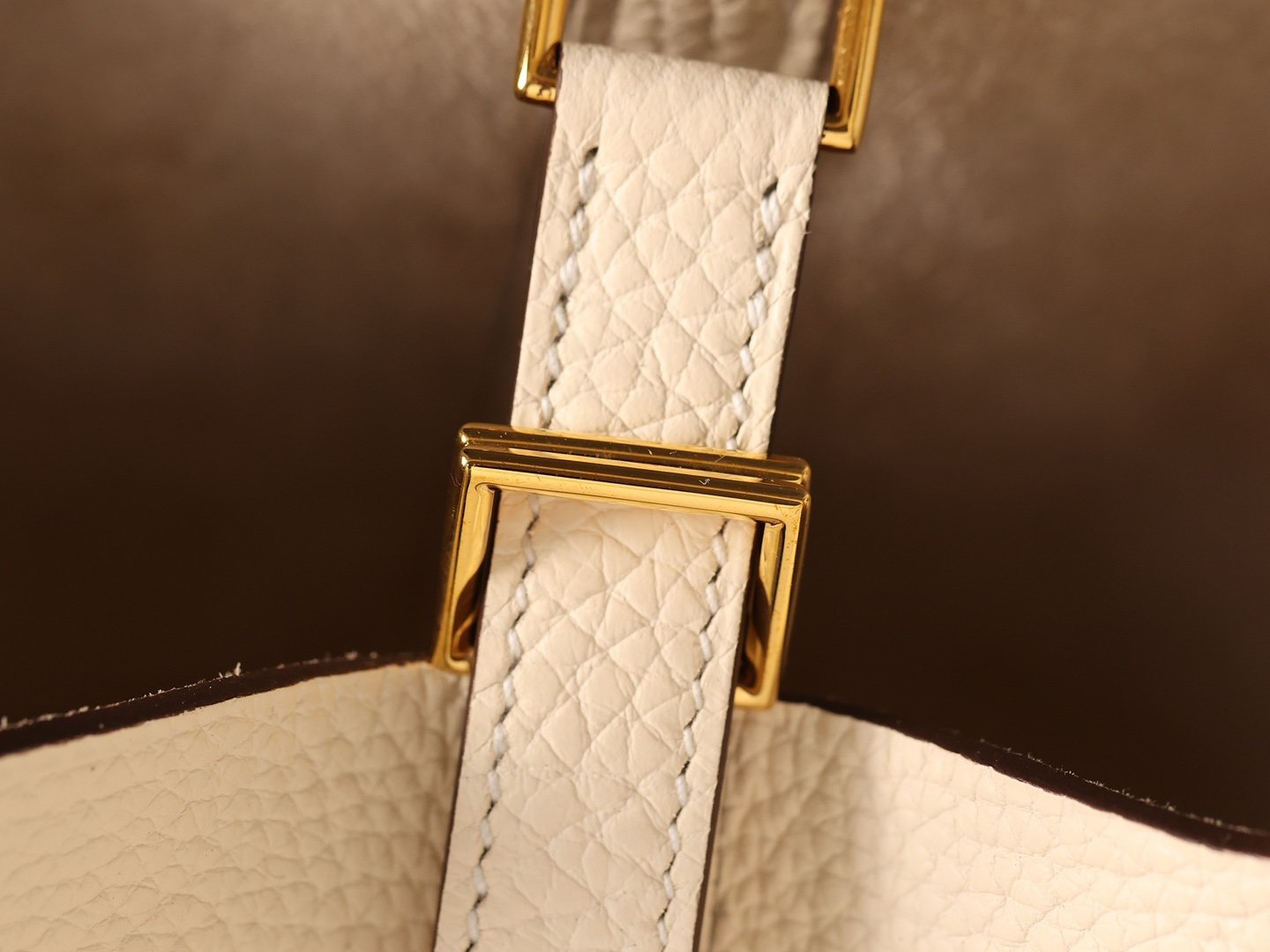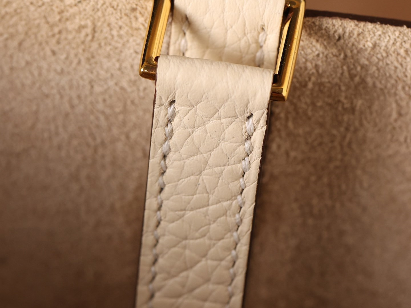 • 高仿A貨Hermes菜籃子包包奶昔白色金扣手工縫製