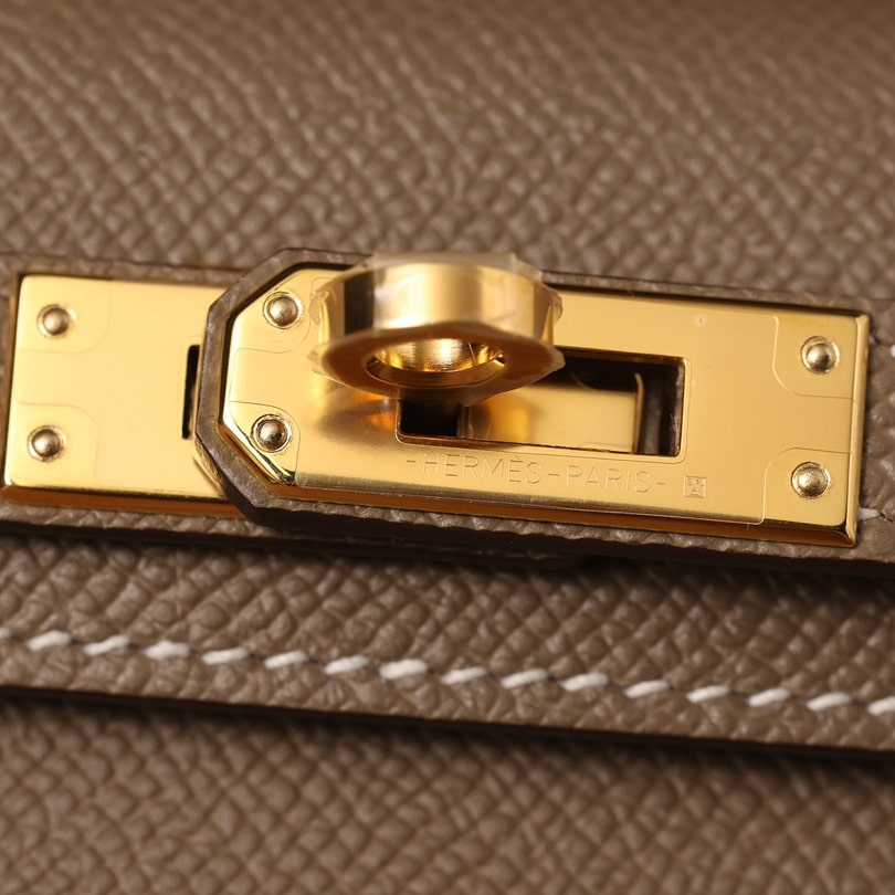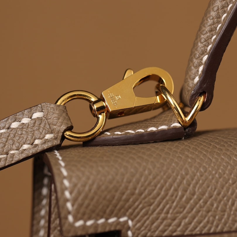 • 高仿Hermes*KellyMini二代大象灰金扣免檢版