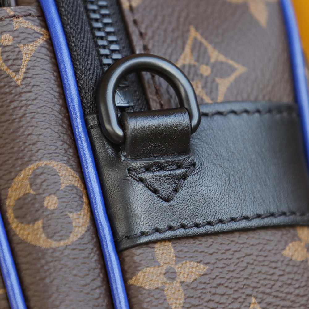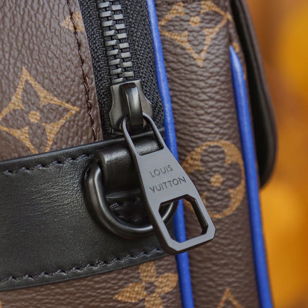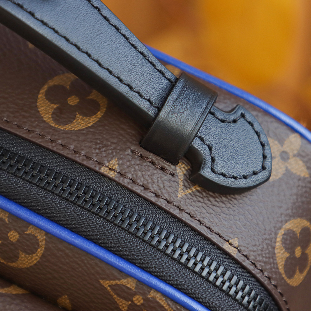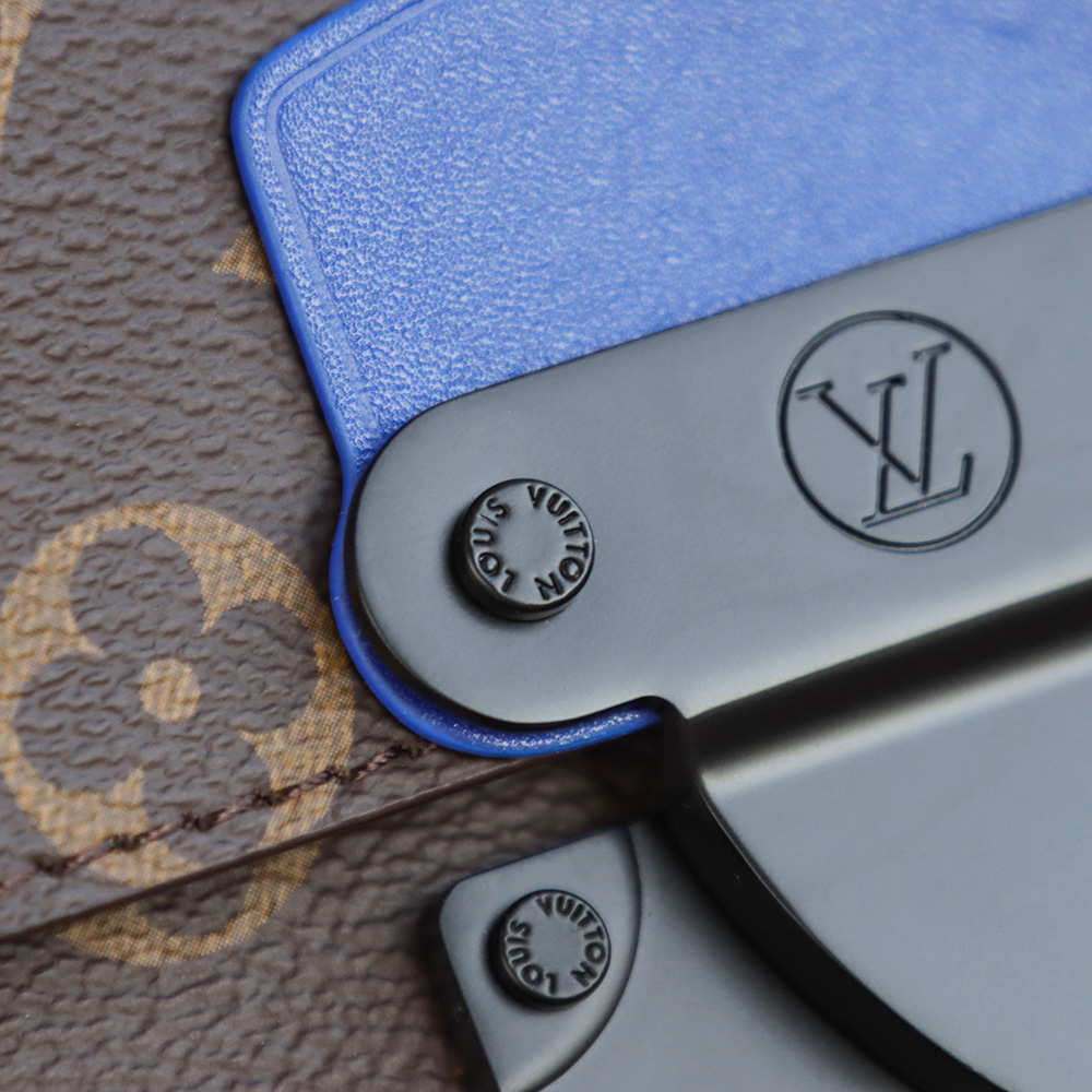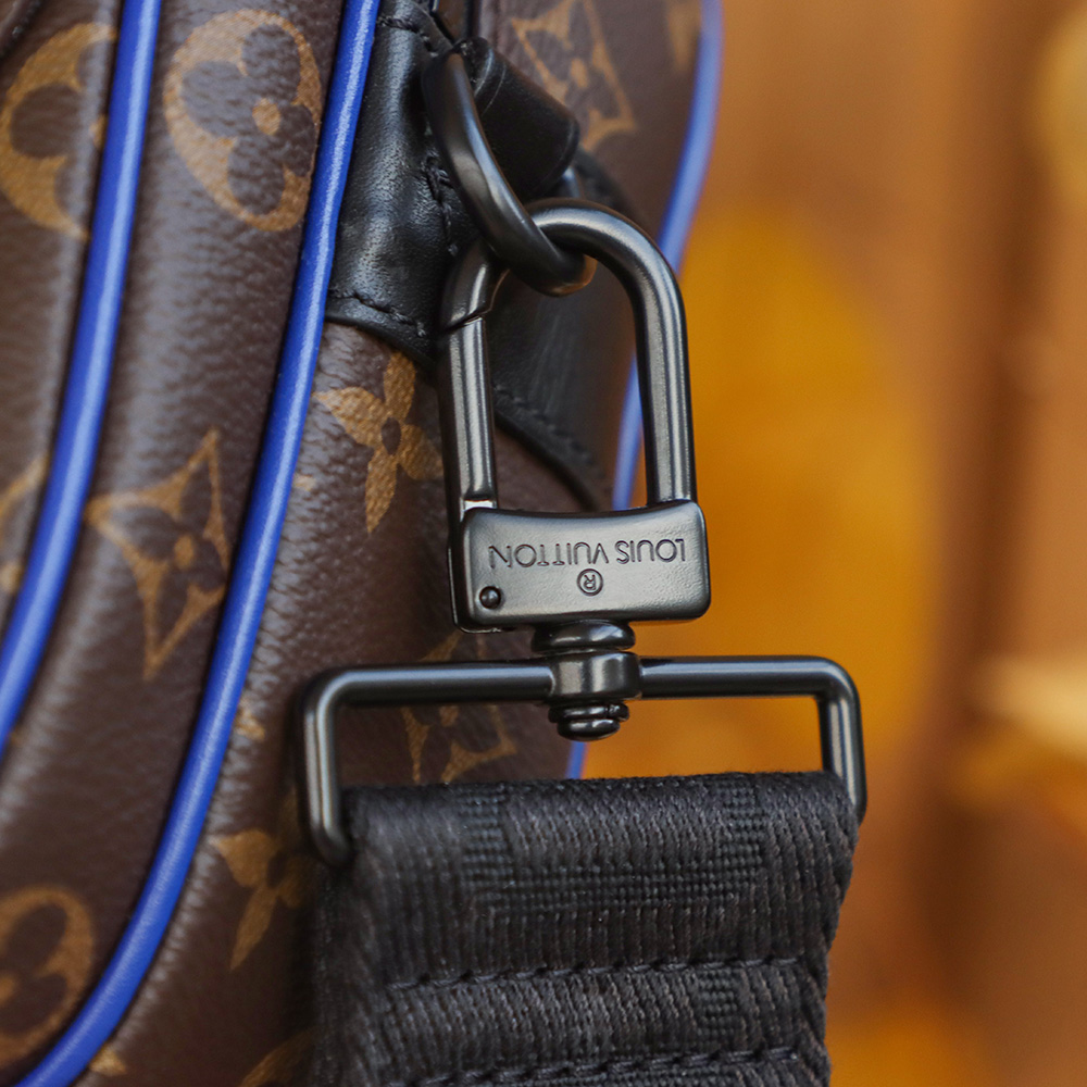 厚實的包體.分為夾層放置空間.從裁剪布料相對應的還原LOGO設計.皮料的頂部與底部半邊印花都是經過比對原版.無誤差後續通過純手法縫製而成.原單LV郵差包詮釋了精細修正後的效果.而藍色的皮革精選進口同廠源料.無色差手感與專櫃一致.