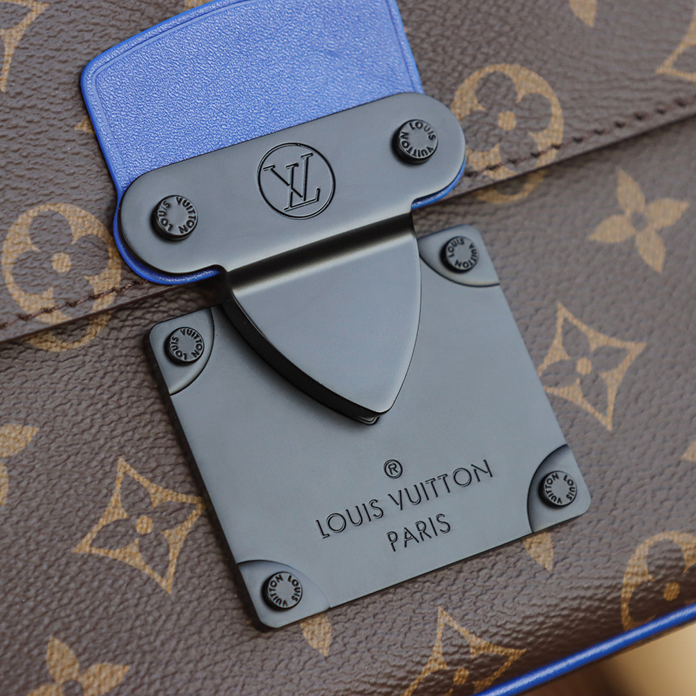 一款以經典Lock系列的郵差包通過增加了藍色皮革成為新穎的包款.改變了傳統經典老花郵差包的慣例.更加體現男士佩戴過程中能夠輕鬆駕馭.作為高仿A貨的代表之一.購入原版1:1開模復刻.高仿LV郵差包針對大小細節處理精準復刻.做到百分之99無限接近.