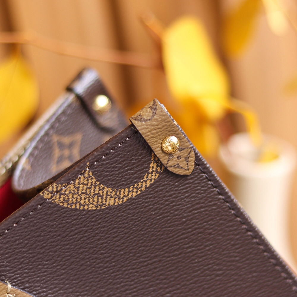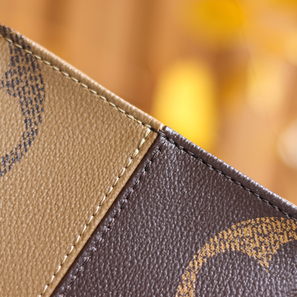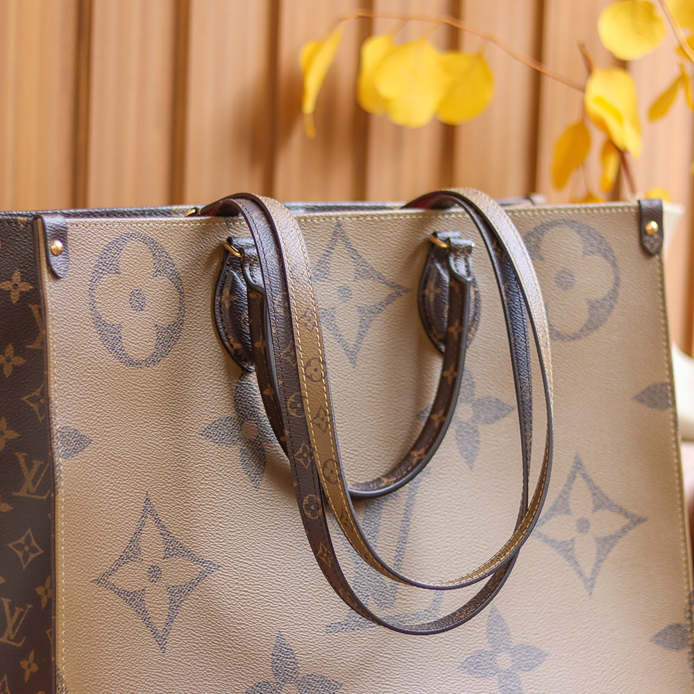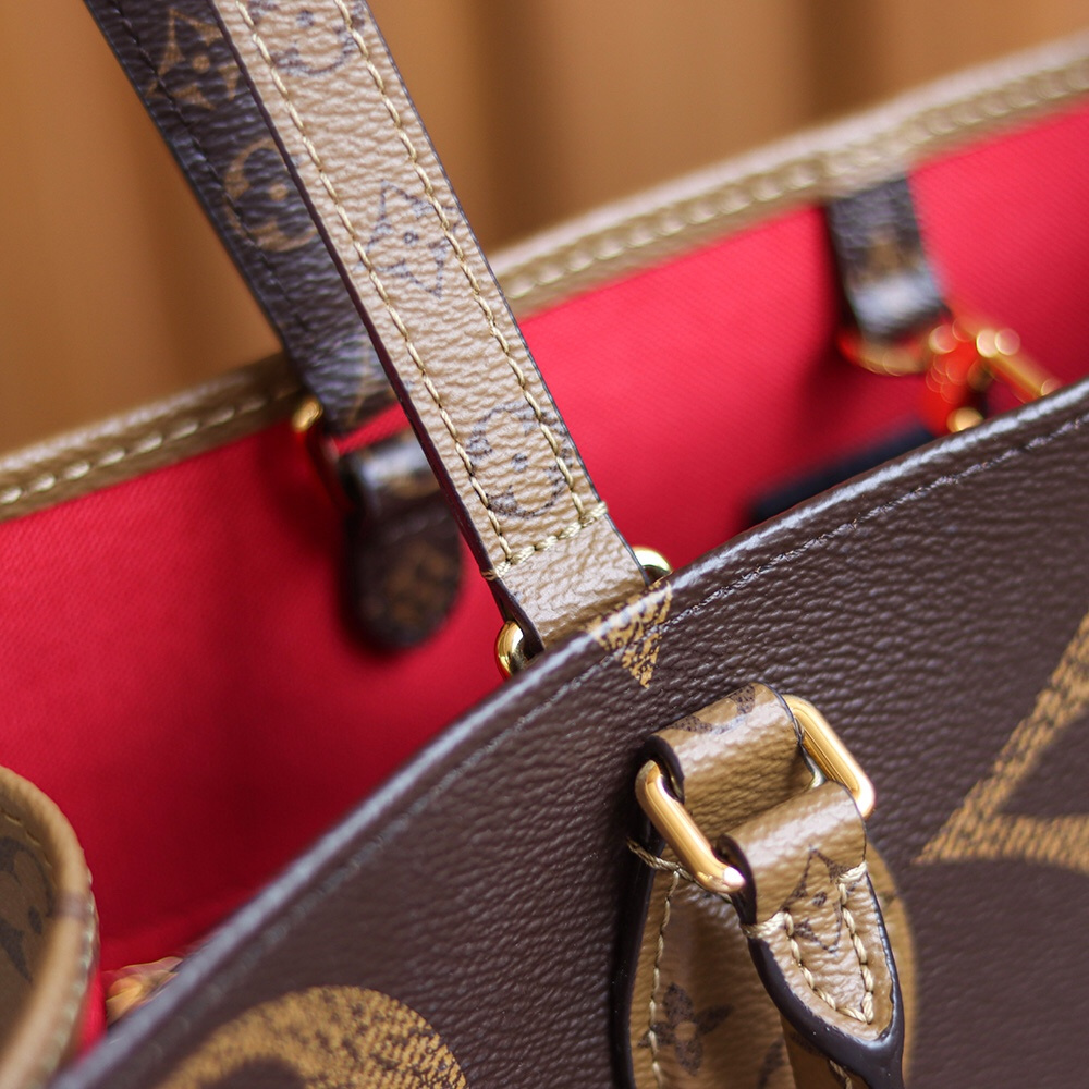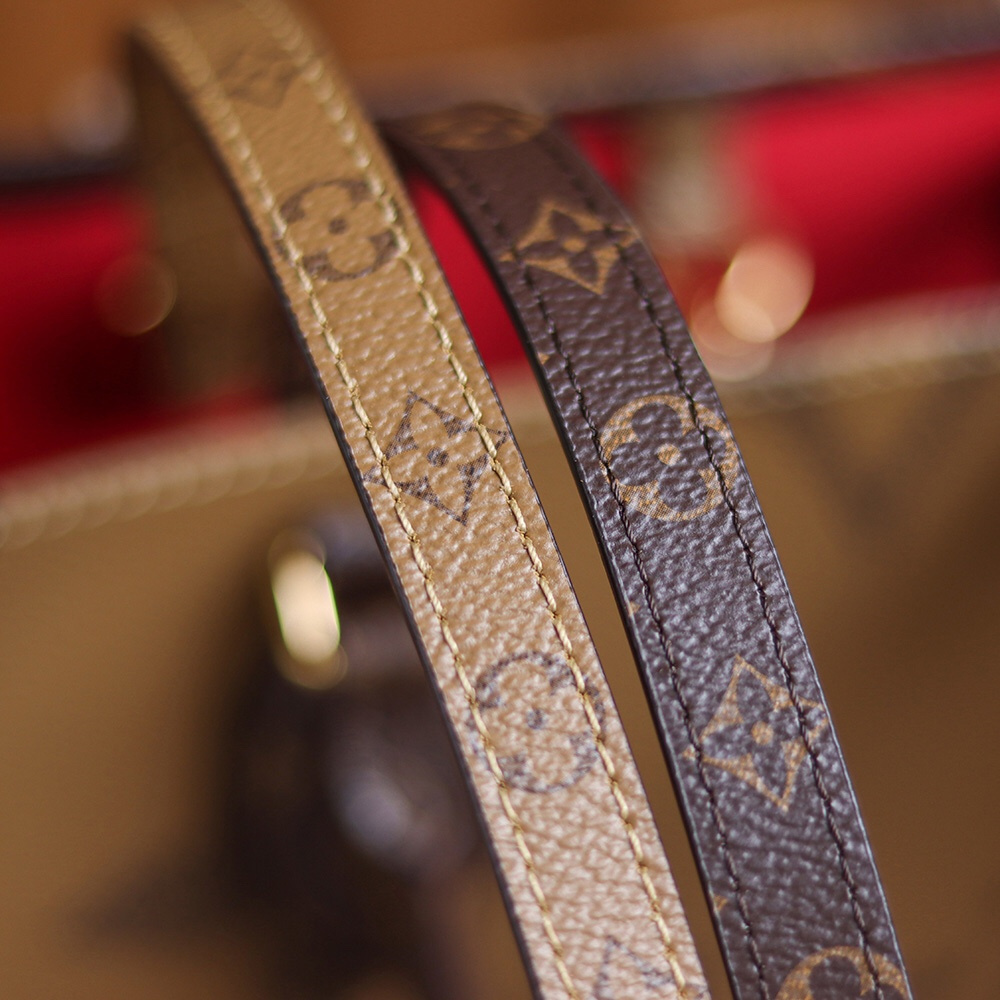 LV包包Onthego系列以Tote包為核心設計,深受眾多女性的喜愛,特別是作為媽媽包的小號尺寸,完美適合日常使用。這款高仿LV托特包繼承了正品的設計,採用三色帆布面料,每一面都展現出獨特的高級視覺效果。精選的Monogram帆布在裁剪上精心控制,高仿LV包包確保每一部分的LOGO都精確對應。