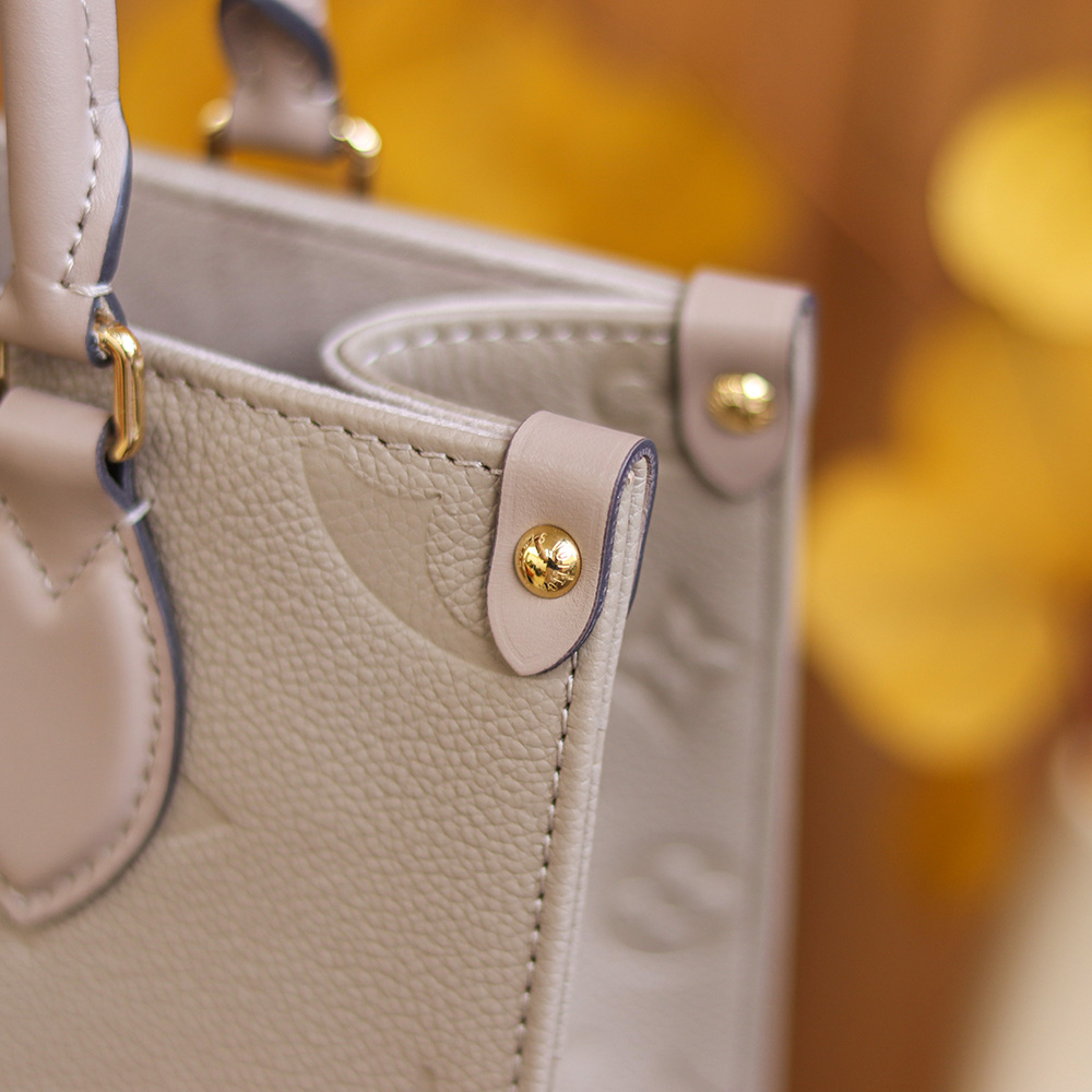 獨家製作工藝全新推出最新款高仿LV女包系列.Onthego小號包型作為新型材質的應用繼承了原裝正品應有的硬朗包身.其中就以多種背戴方式結合出Tote包款和單肩手提式應用.單單從包型的大小尺寸的還原.分別以原廠真牛皮革1:1打造還原.同步原版 Monogram-Empreinte壓紋牛皮.