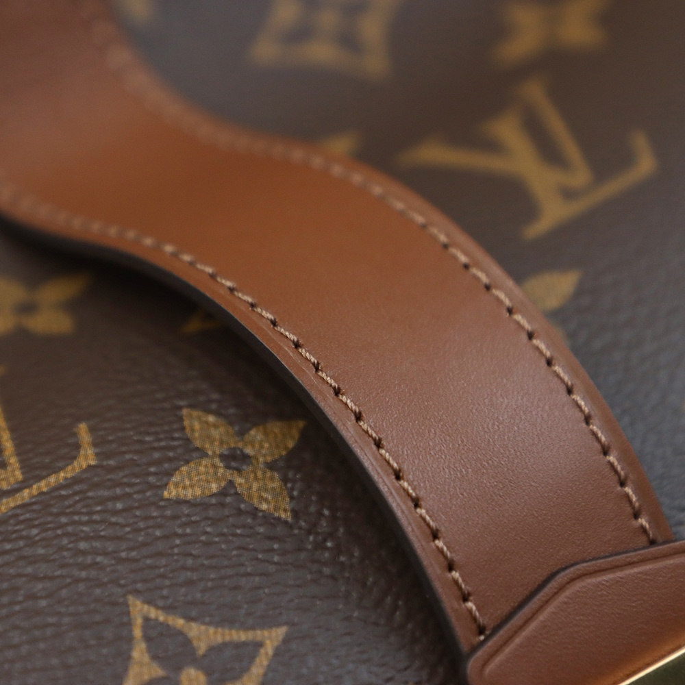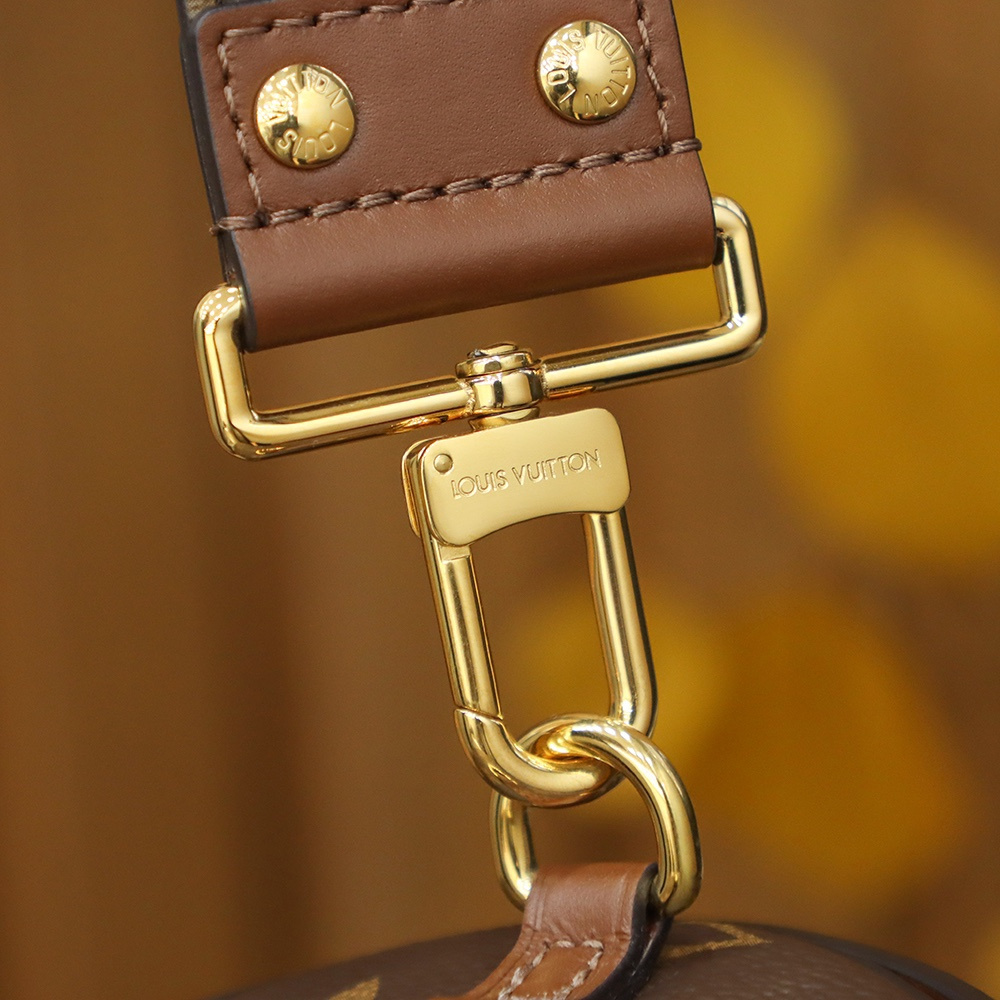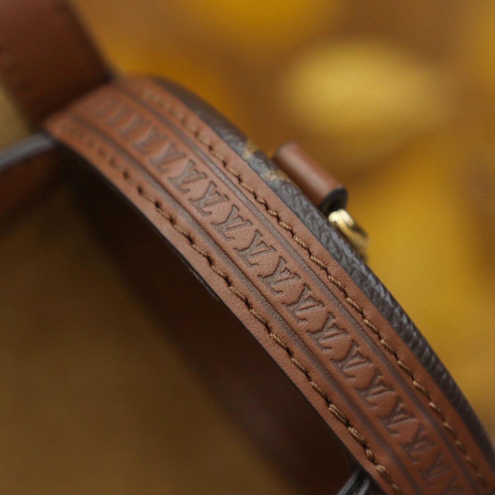 每一塊帆布精心裁剪出相對應結構部件.後續通過純手工使用法國羊毛棉線縫合.外縫線的細節呈現對齊工整並且路線與原版一致.高仿LV單肩包針對包面皮革鑲嵌的鉚釘.根據專櫃品質把控距離位置.每一個鉚釘的打磨拋光後的光澤度細膩.複雜的流暢逃離不了工匠的耐性製作.