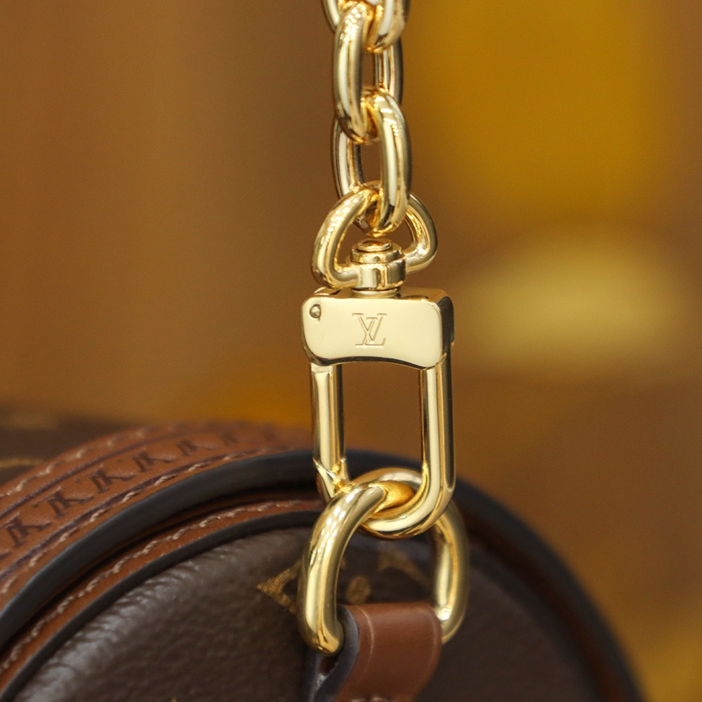 金屬包扣按鍵式開合方式.牢固穩定在帆布.搭配鏈條手提款式與眾不同的多種方式日常佩戴.圓形的包體還原度達到了百分之98左右.同時原單LV圓筒包已經是達到了國際貿易質檢標準.從皮質到材料的應用再到還原的級別無法辨別真假包包.高仿包包香港定制版本值得擁有.