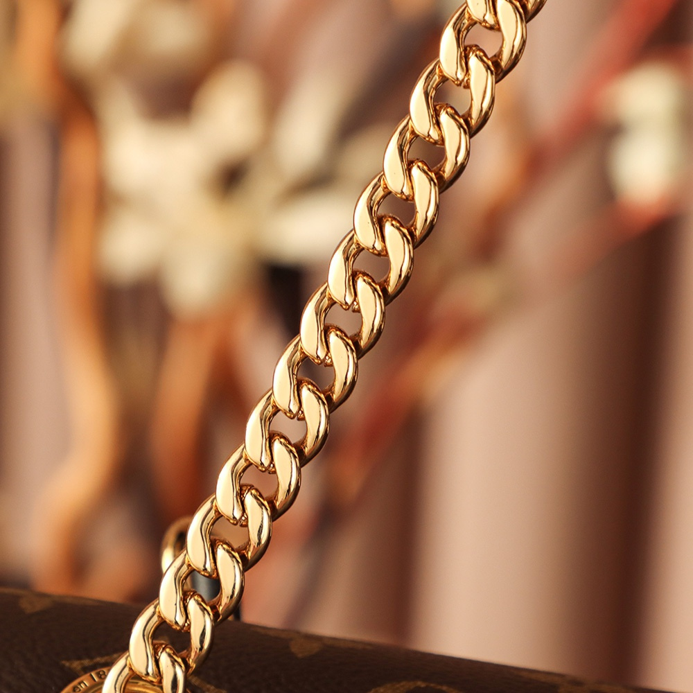 電鍍工藝完成扣具配色.不氧化不掉色.包括鏈條的打磨拋光手感絲滑順暢.外置縫製使用法國進口羊毛棉線經過純手工縫合製作而成.在高仿包包上你完全可以了解到原版品質.從皮革到針線縫合無處不在的高端手感和細節都能夠精細還原.高仿LV郵差包真正做到獨家市面上定製版本.