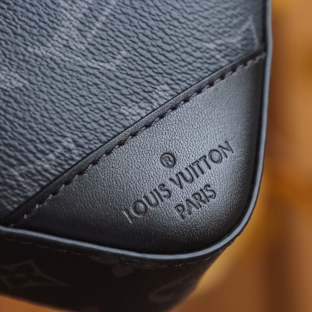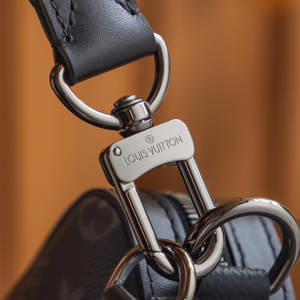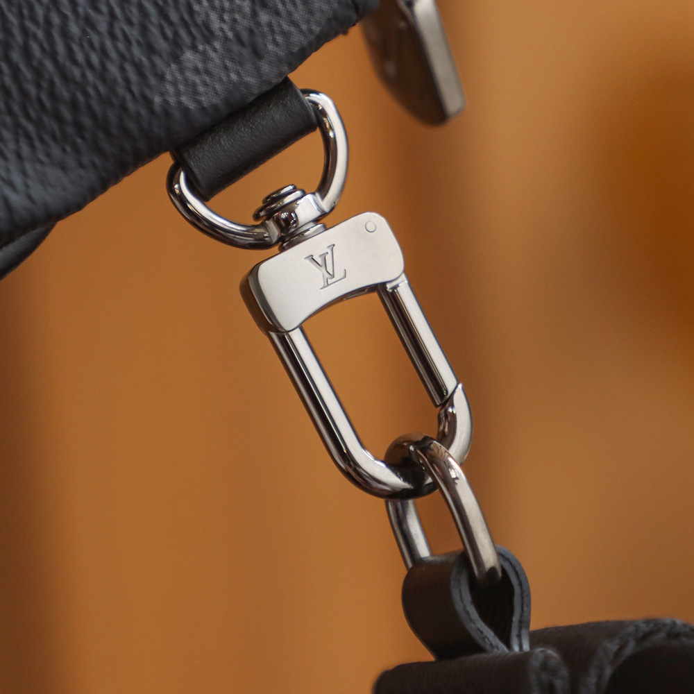 • 高仿LV男包Trio系列經典黑花郵差包免檢版